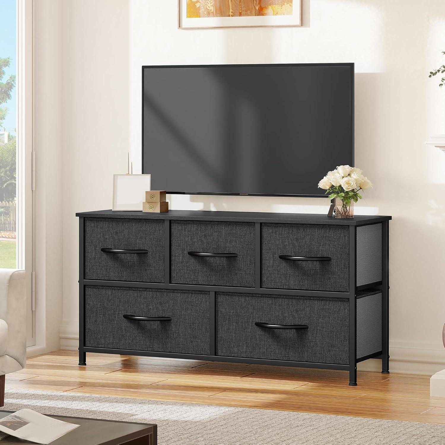 YITAHOME Dresser with 5 Drawers – Fabric Storage Tower, Organizer Unit for Bedroom, Living Room, Closets – Sturdy Steel Frame, Wooden Top(Cool Black)