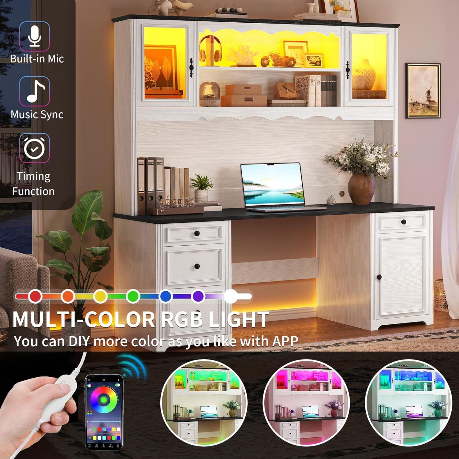 Cool Smart RGB LED Light Strips for Gaming & Work: Our executive computer desk with drawers features a beautiful RGB LED light strip, flexibly controlled by a phone app or light strip switch, and you can customize any color you like via app. Plus, choose from various modes including music sync,built-in Mic and timers functions. Upgrade your workspace with our sleek, customizable LED light strips-designed to enhance productivity, creativity, and relaxation at your executive desk, gaming setup, or home office