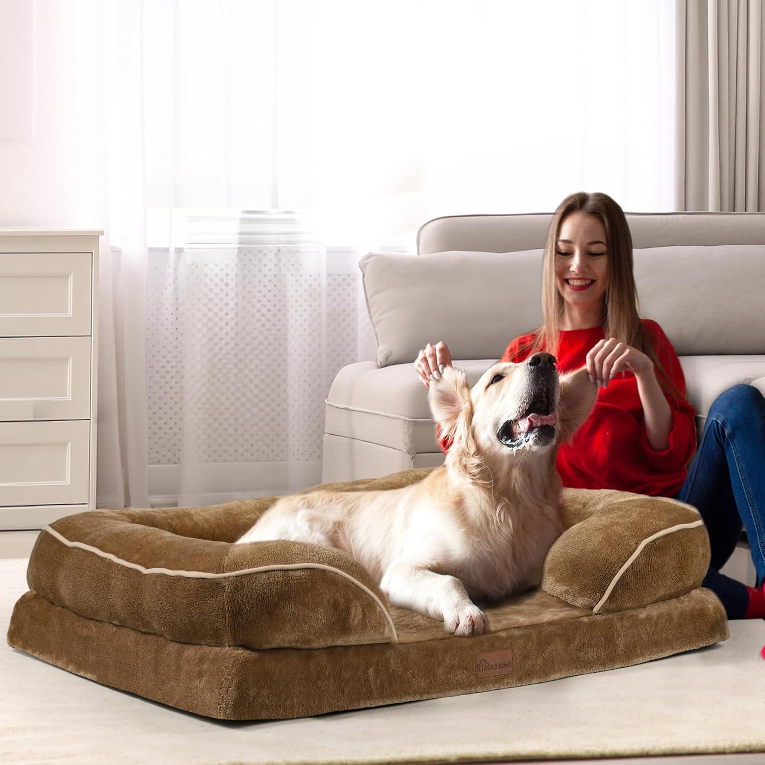 【MULTIPLE SIZES】5 sizes to choose from: Medium dog bed for medium dogs up to 30LB, large dog bed for dogs up to 50LB, X-Large dog bed for dogs up to 90LB. Jumbo Dog Bed for dogs up to 150LB of all ages. Please refer to our recommended weights and sizes for a more comfortable sleeping environment for your fluffy family.