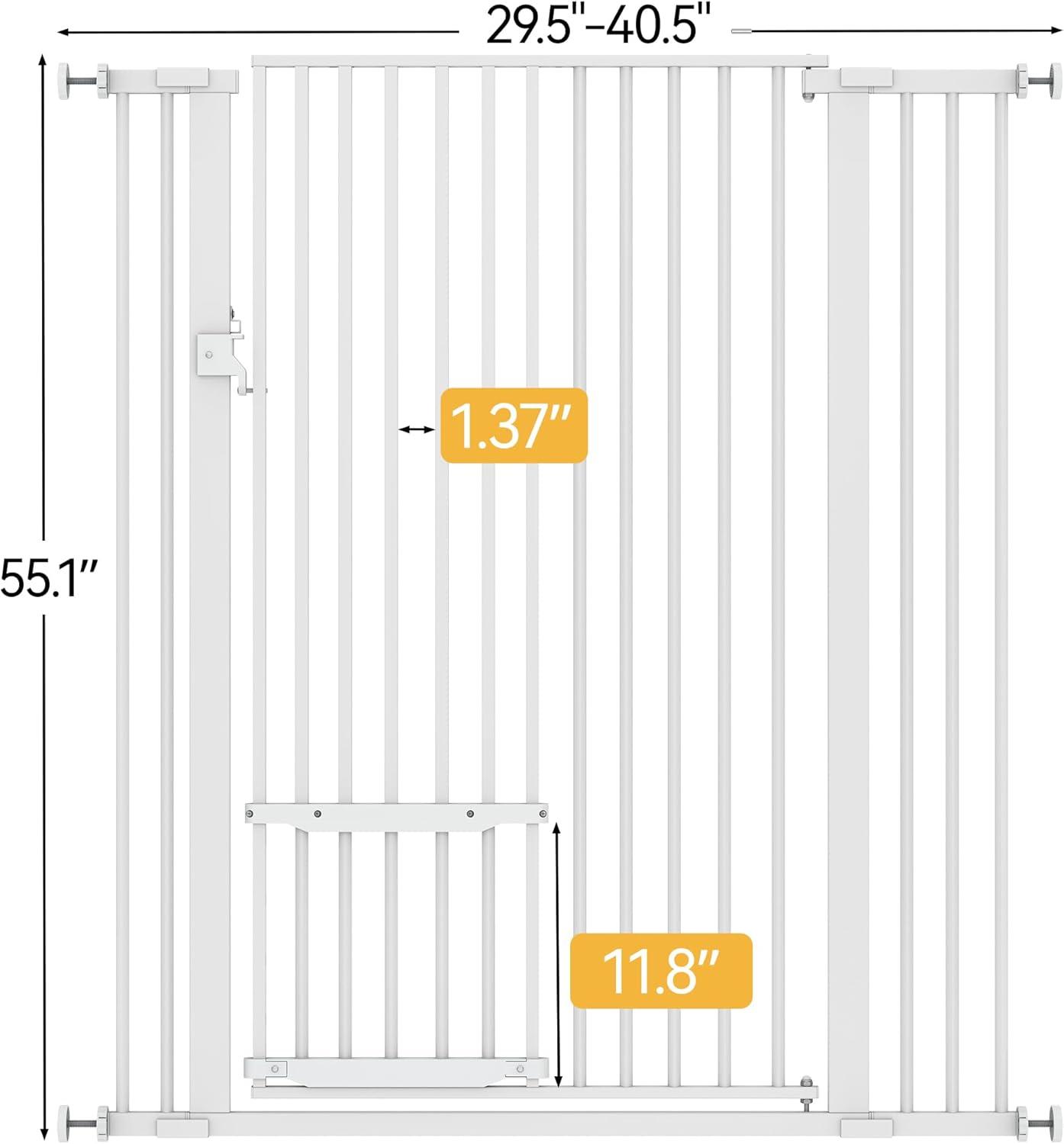 1.37″ Utral Narrow Gap: With a spacing of only 1.37 inches between the tubes, our metal cat gate prevent small pets, such as cats or small dogs, from squeezing through or getting their heads stuck between the bars. This ultra-narrow design provides maximum safety for your pets.