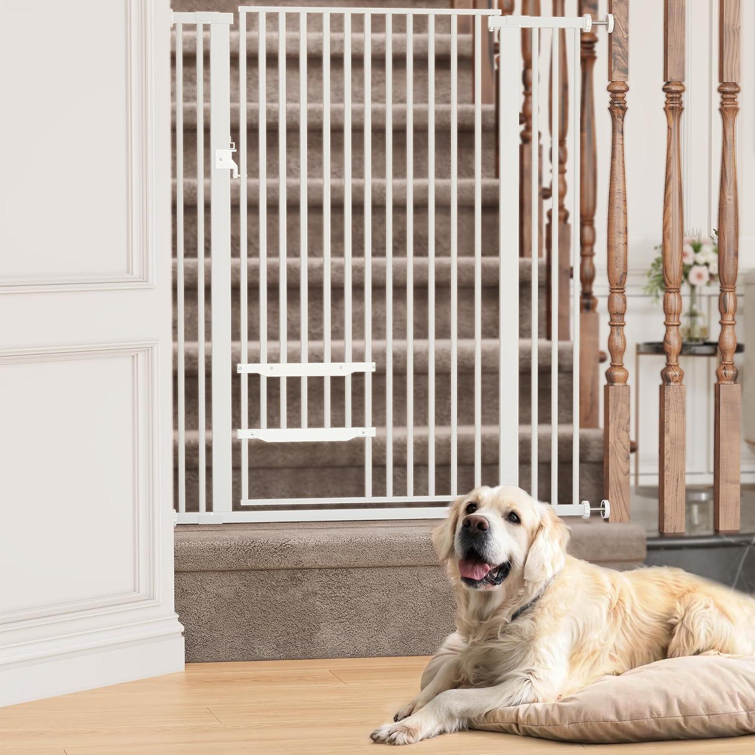 55.1″ Extra Tall x 40″ Wide : The pet gate is 55.1″ tall, with 4 Wall Cups and 2 Extension Pieces, Fits 29.5″ to 40″ openings, for your kitchen, doorways, and stairs. Dog gates can be useful for separating dogs from other pets or specific individuals in the household, providing a safe distance when needed.
