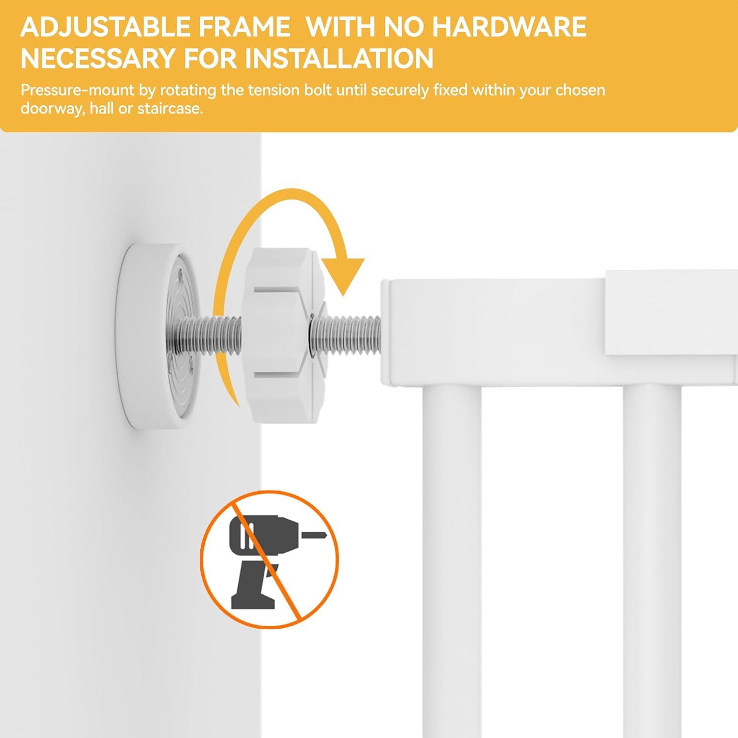 Pressure Mounted with Ease: imple and quick pressure installation, not require additional tools and no holes in the wall. NOTE: Please don't cut the tie until you successfully install the cat gate extra tall, follow the provided instructions carefully .