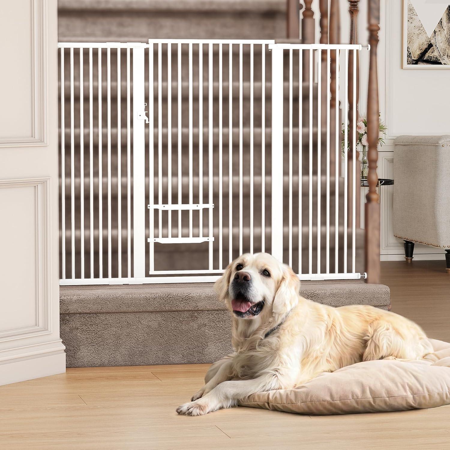 imageYITAHOME Extra Tall 55quot High Metal Dog Gate with Cat Door 295quot 40quot Wide Auto Close Pet Gate Indoor for Stairs Doorways House No Drilling Pressure Mount Sturdy White295 433 Wide  551 Tall