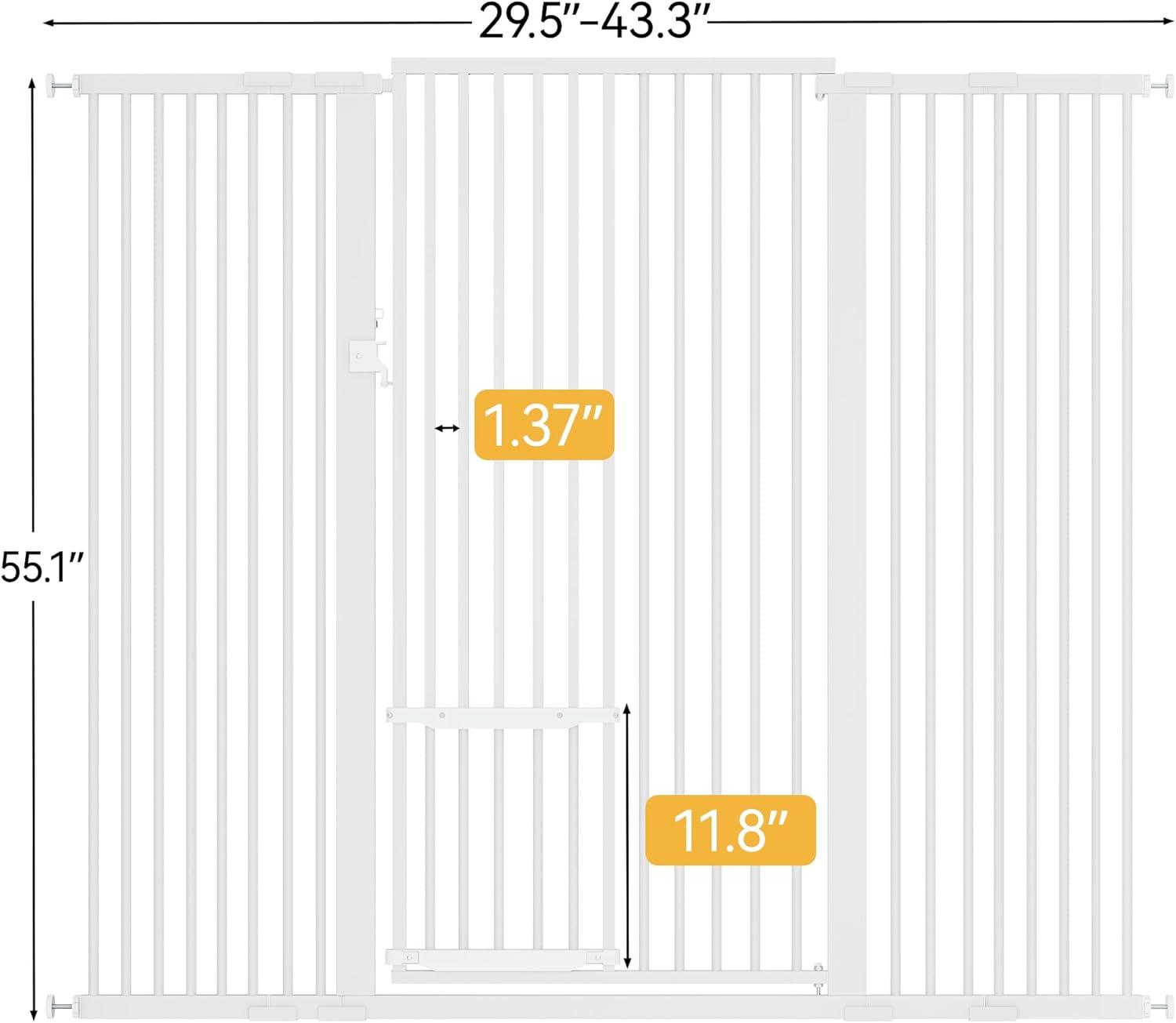 YITAHOME Extra Tall 55" High Metal Dog Gate with Cat Door, 29.5"- 40" Wide Auto Close Pet Gate Indoor for Stairs, Doorways, House, No Drilling Pressure Mount, Sturdy, White(29.5"- 43.3" Wide 55.1" Tall)