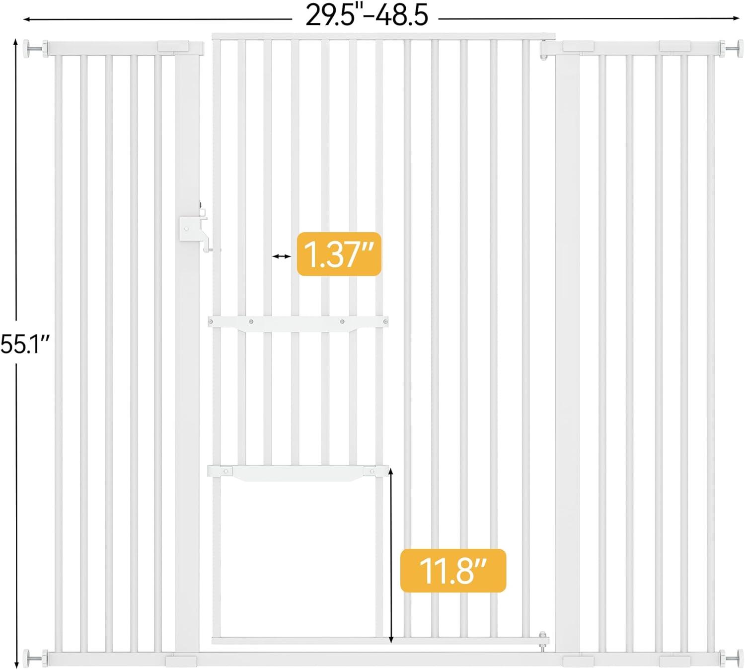 YITAHOME Extra Tall 55″ High Metal Dog Gate with Cat Door, 29.5″- 40″ Wide Auto Close Pet Gate Indoor for Stairs, Doorways, House, No Drilling Pressure Mount, Sturdy, White(29.5-48″ Wide 55.1″ Tall)
