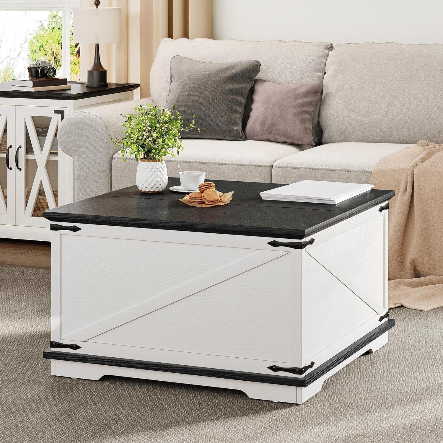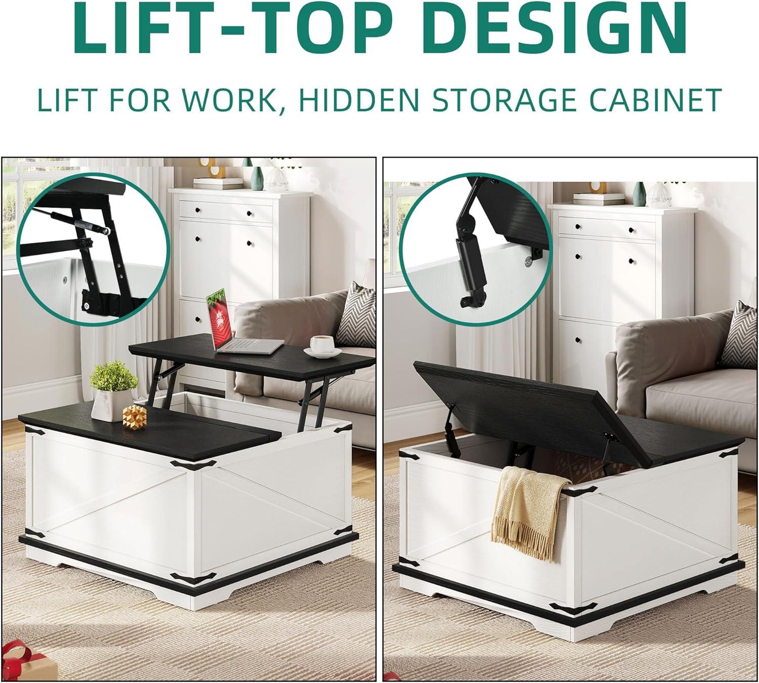 Elegant farmhouse style: Square coffee table adopts a classic farm style design, the unique texture and black metal angle iron decoration add to the modern industrial match of lift top coffee table, evoking the nostalgic feeling of modern country and retro industrial styles, it goes well with most living room furniture and the decor styles all complement each other