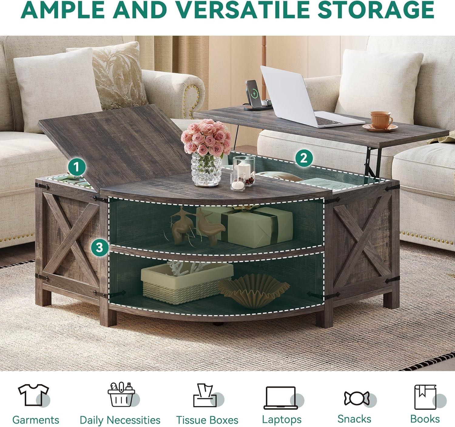 Built-In Power Access: With 2 AC outlets, 2 USB ports, and a 6.7ft cord, our lift top coffee table with storage keeps your laptop and phone powered with ease. Work, relax, or entertain without ever stressing about running out of battery
