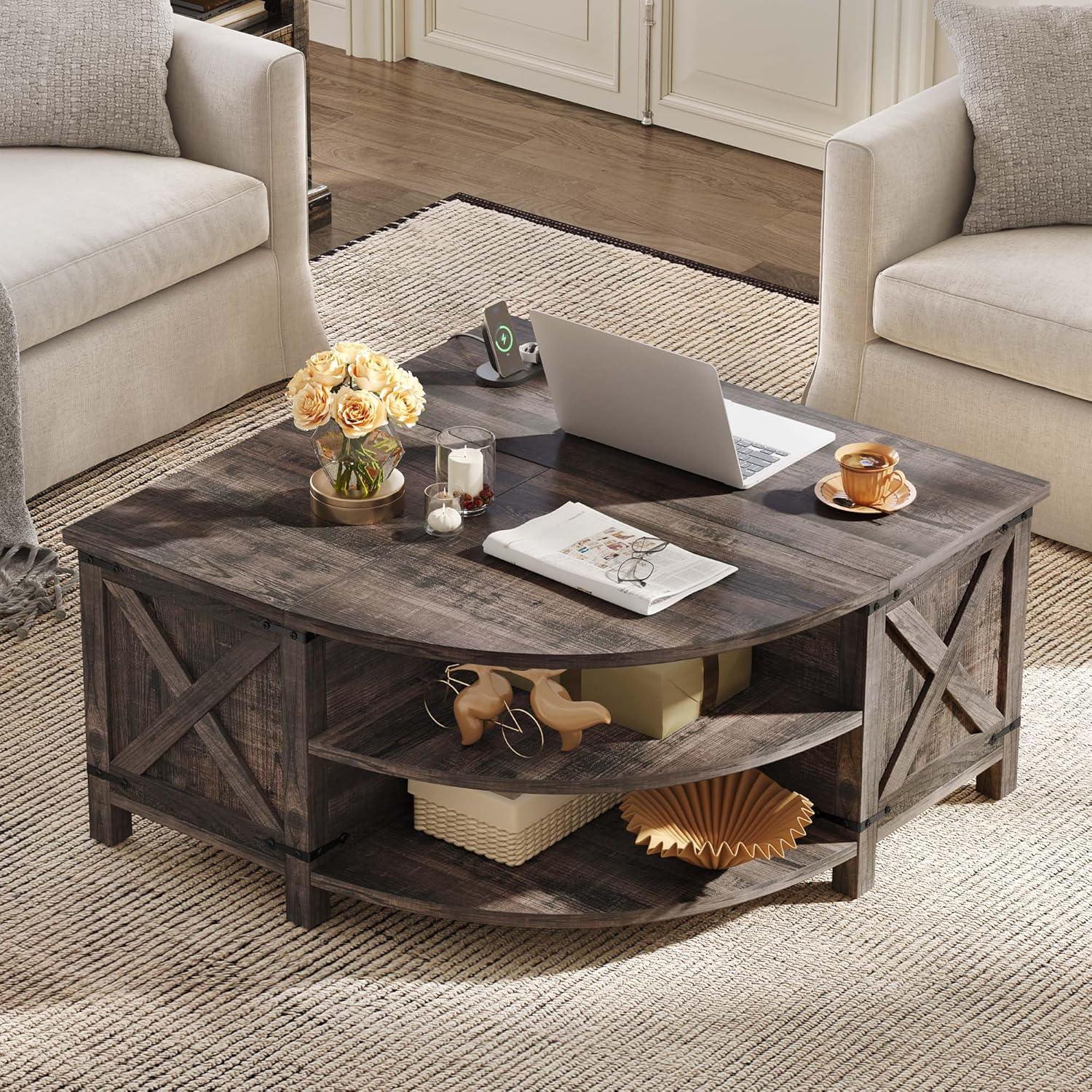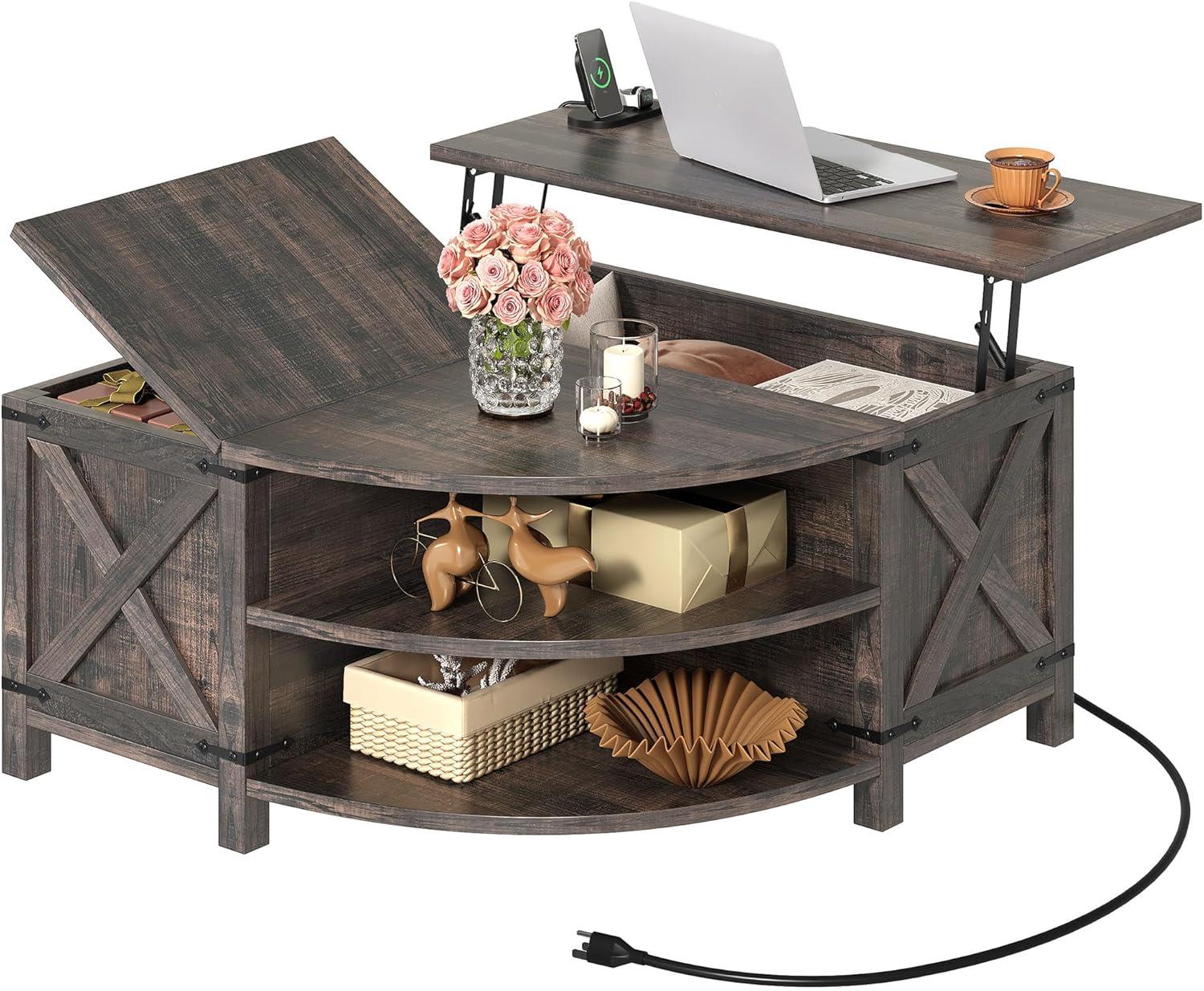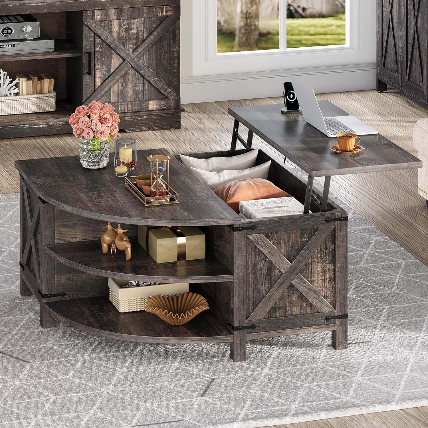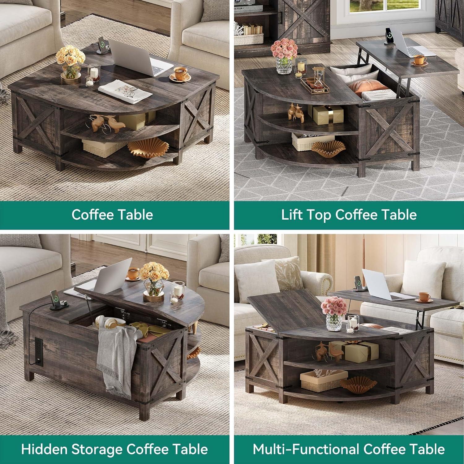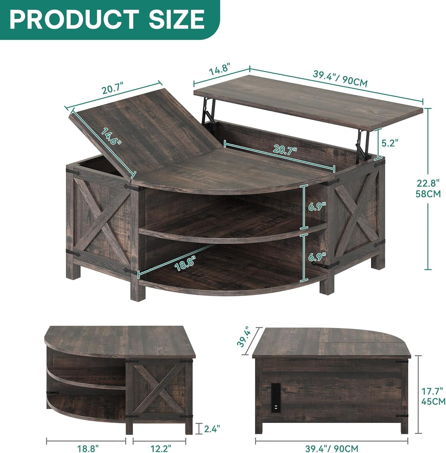 YITAHOME Farmhouse Lift Top Coffee Table with Storage, Wood Cured Center Table with Charging Station&USB Port, Living Room Table w/Large Hidden Space, for Bedroom, Home Office, Dark Rustic Oak(Dark Rustic Oak)