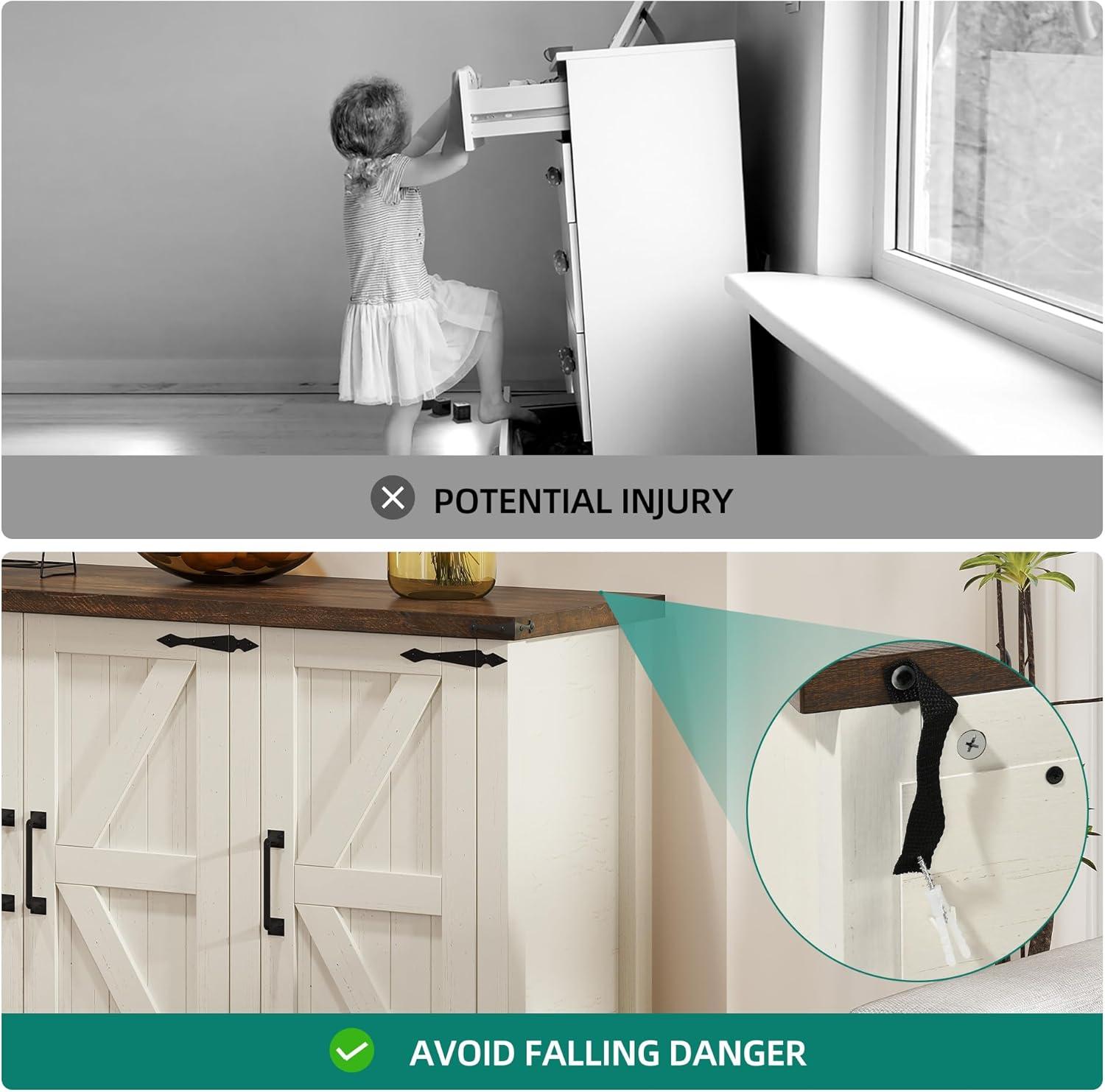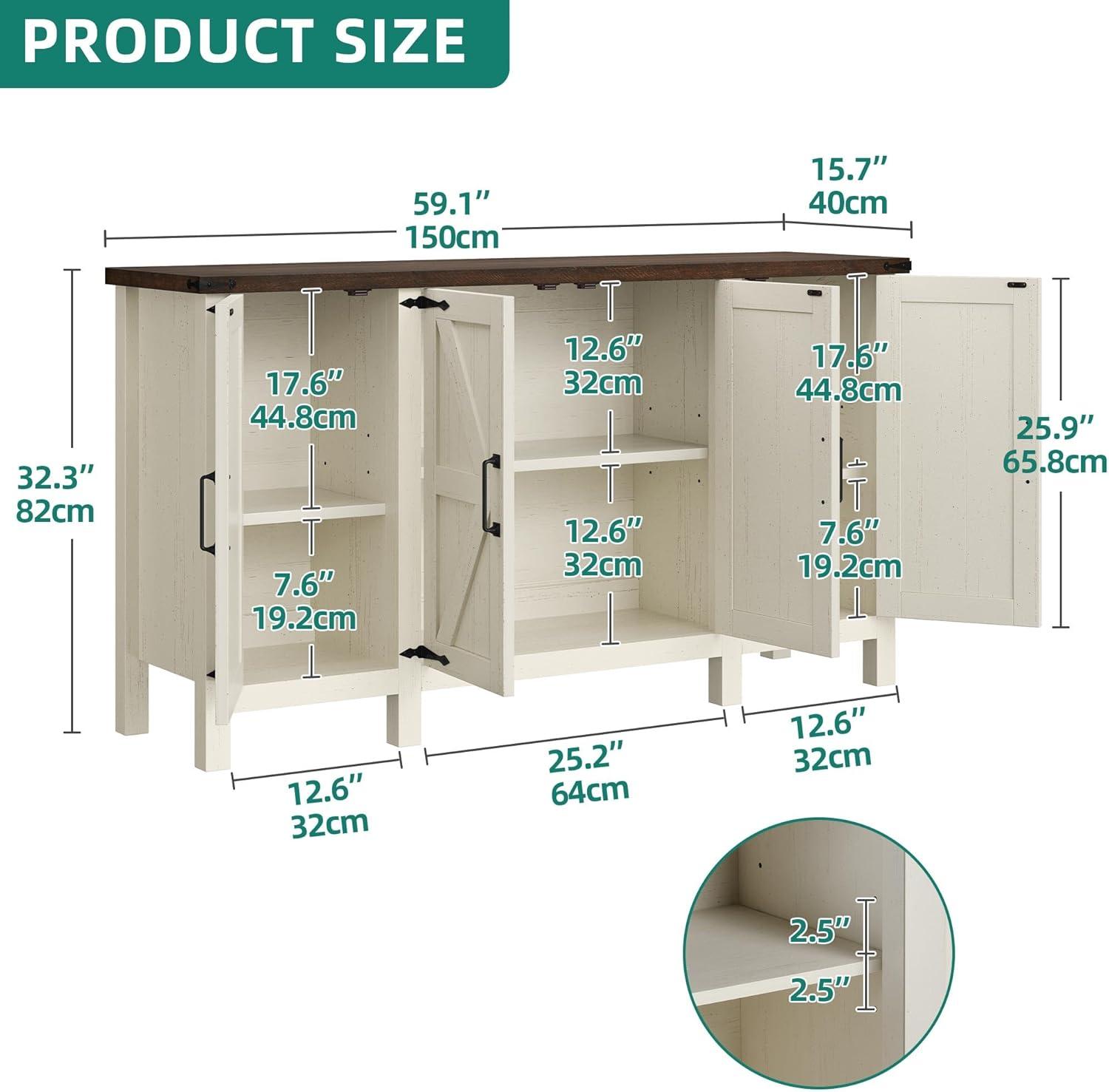 Sturdy and Stable Design: Crafted from high-quality engineered wood with a thick, reinforced top, this sideboard cabinet ensures a secure and stable surface, preventing any wobbling or instability. You can trust this reliable and durable piece to stand strong in your home for years to come