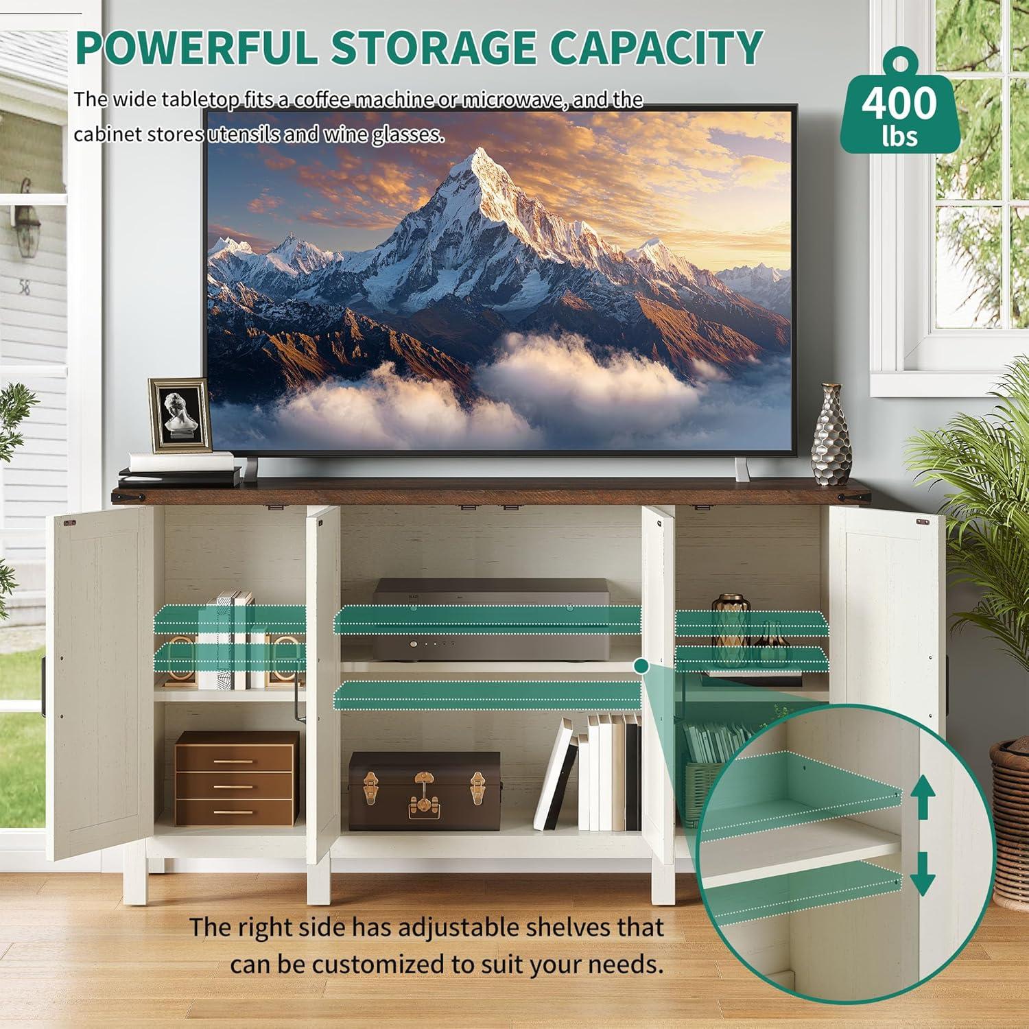 Spacious Storage Solution: This buffet cabinet with storage has 3 large compartments, providing ample storage space for all your essential items. All compartments feature adjustable shelves, allowing you to customize the space to your ever-changing needs