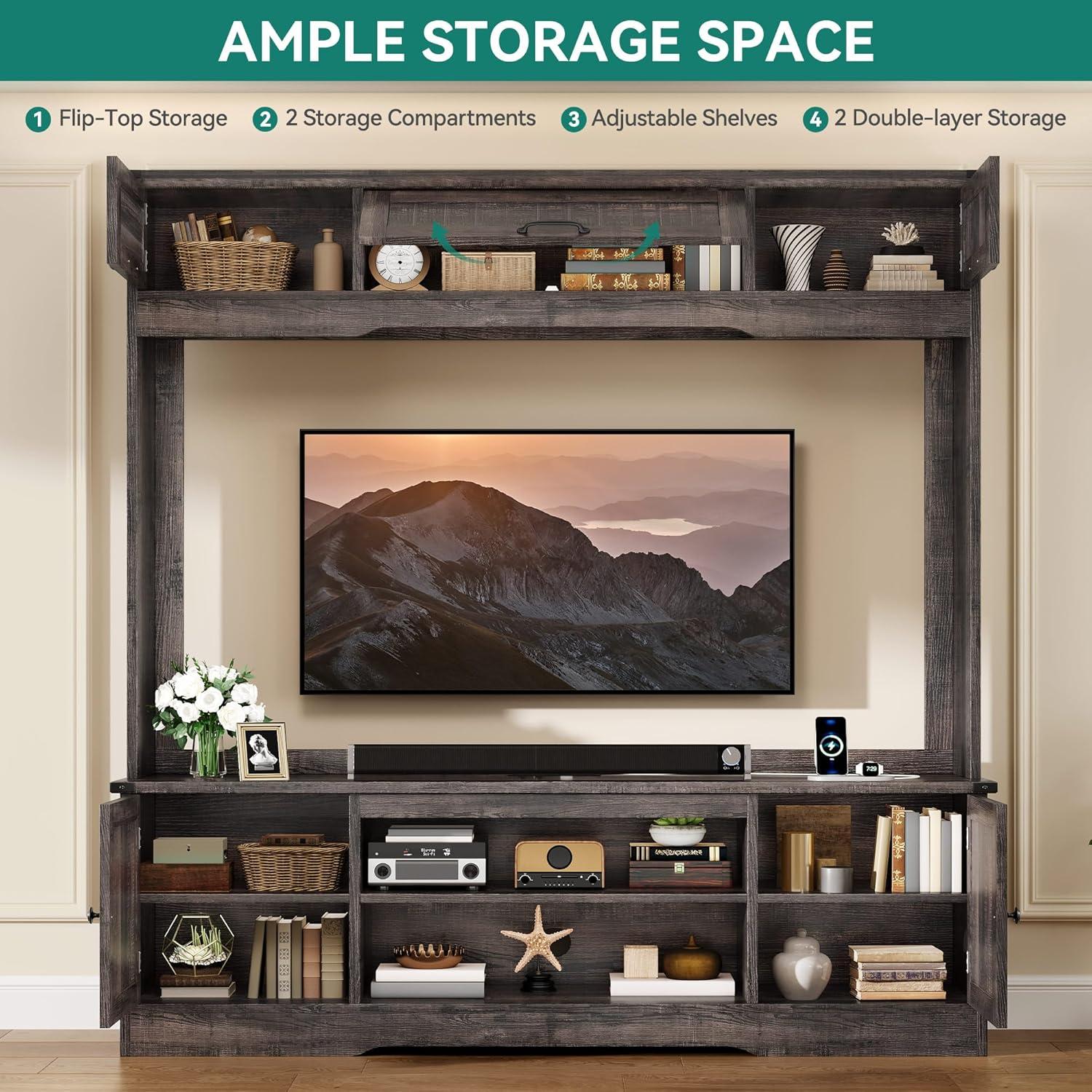 Ample Storage: With 3 flip-up compartments, an adjustable middle shelf, and 4 side shelves, this tv stand for 65 inch TV provides plenty of space to store your media devices, decor, and more. Keep everything organized and accessible for a tidy space