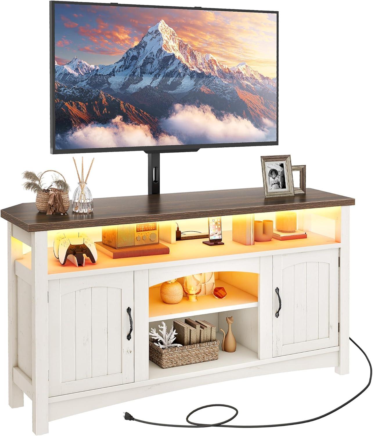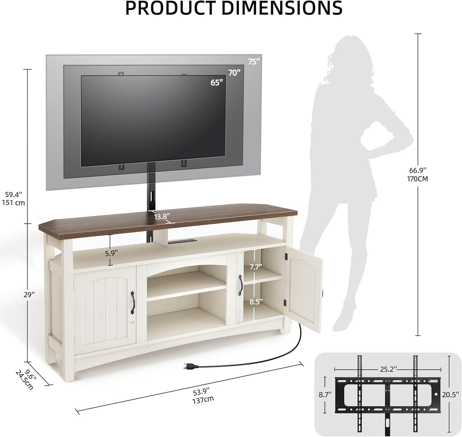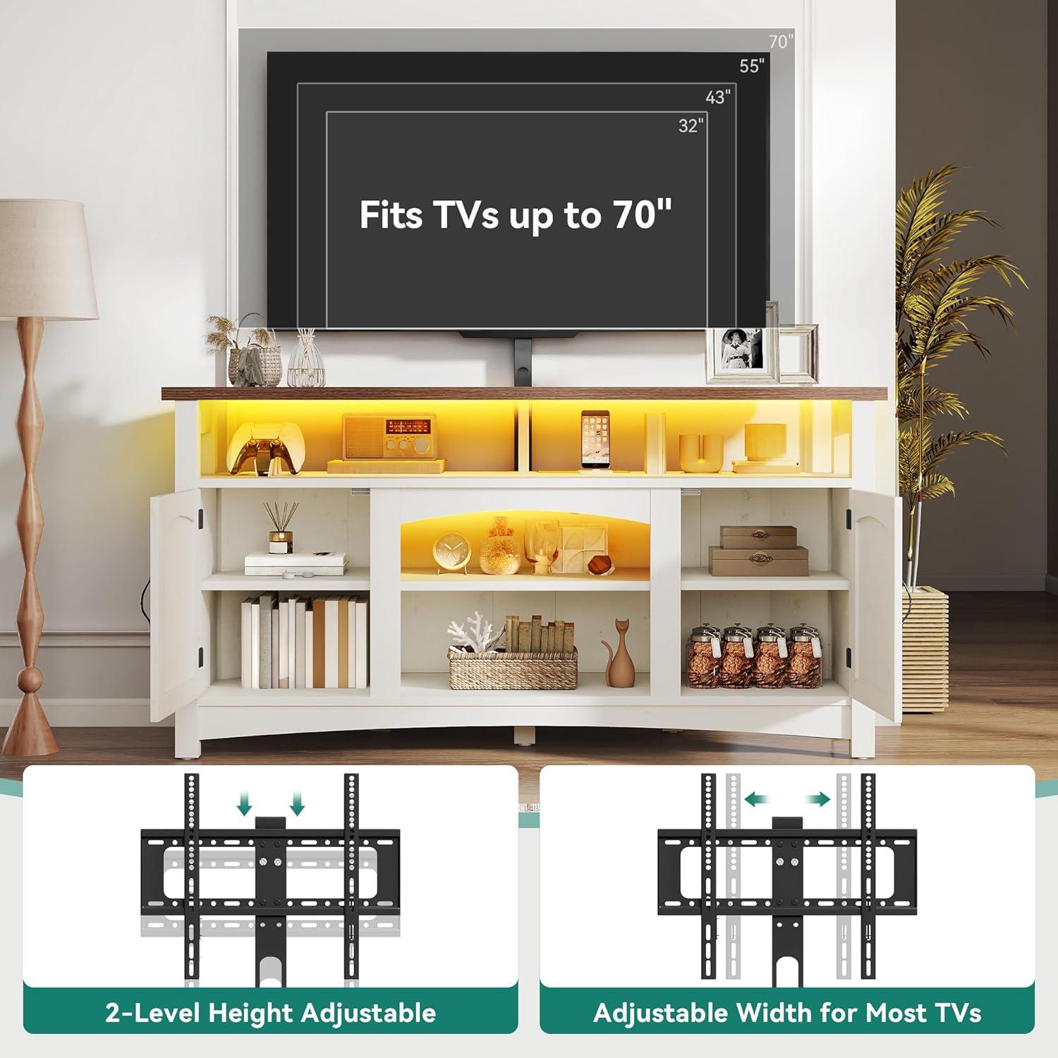 Sturdy & Stylish Farmhouse Design – Constructed from high-quality engineered wood with a reinforced base, this TV console delivers long-lasting stability. The warm white body paired with a walnut finish top brings a timeless, rustic farmhouse charm that enhances any living room decor