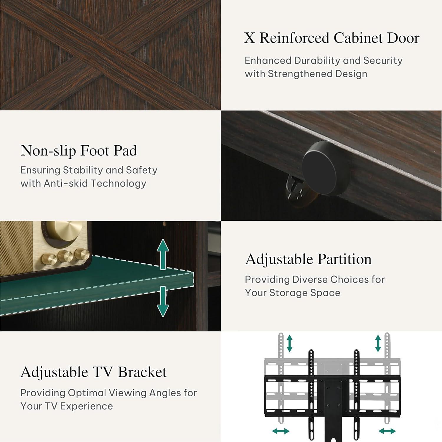 Sturdy Farmhouse TV Stand: Crafted from engineered wood with a reinforced base, this TV console table offers lasting durability. The X motif add cozy, rustic farmhouse charm to your space, providing enduring beauty that never goes out of style