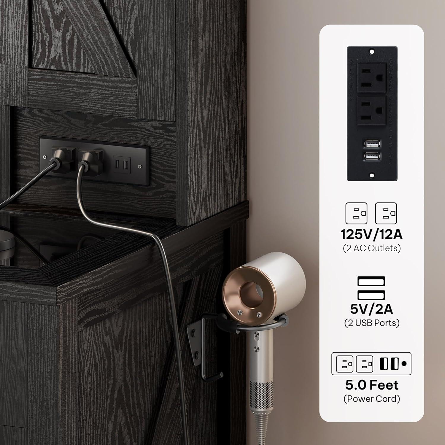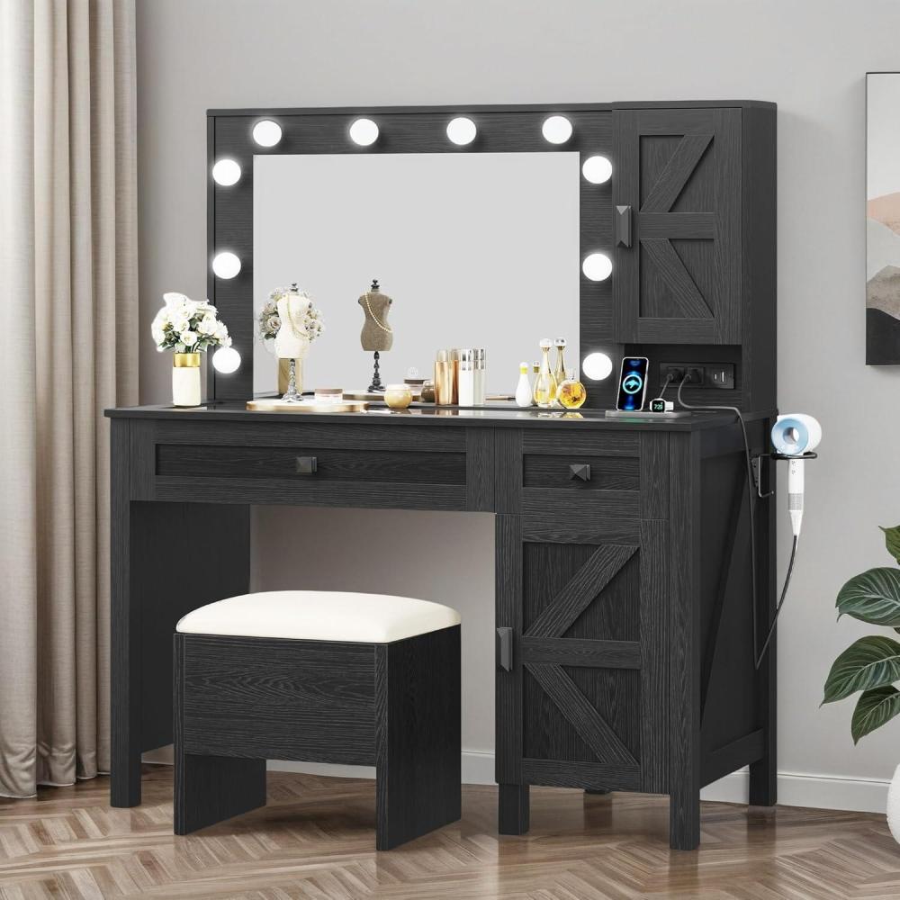 ​Built-in Power Strip with Hair Dryer Holder​ – This ​vanity with charging station​ features 2 USB ports and 2 AC outlets for convenient device charging. The integrated hair dryer holder keeps styling tools organized and accessible, creating an efficient ​makeup vanity with storage​ station for daily beauty routines