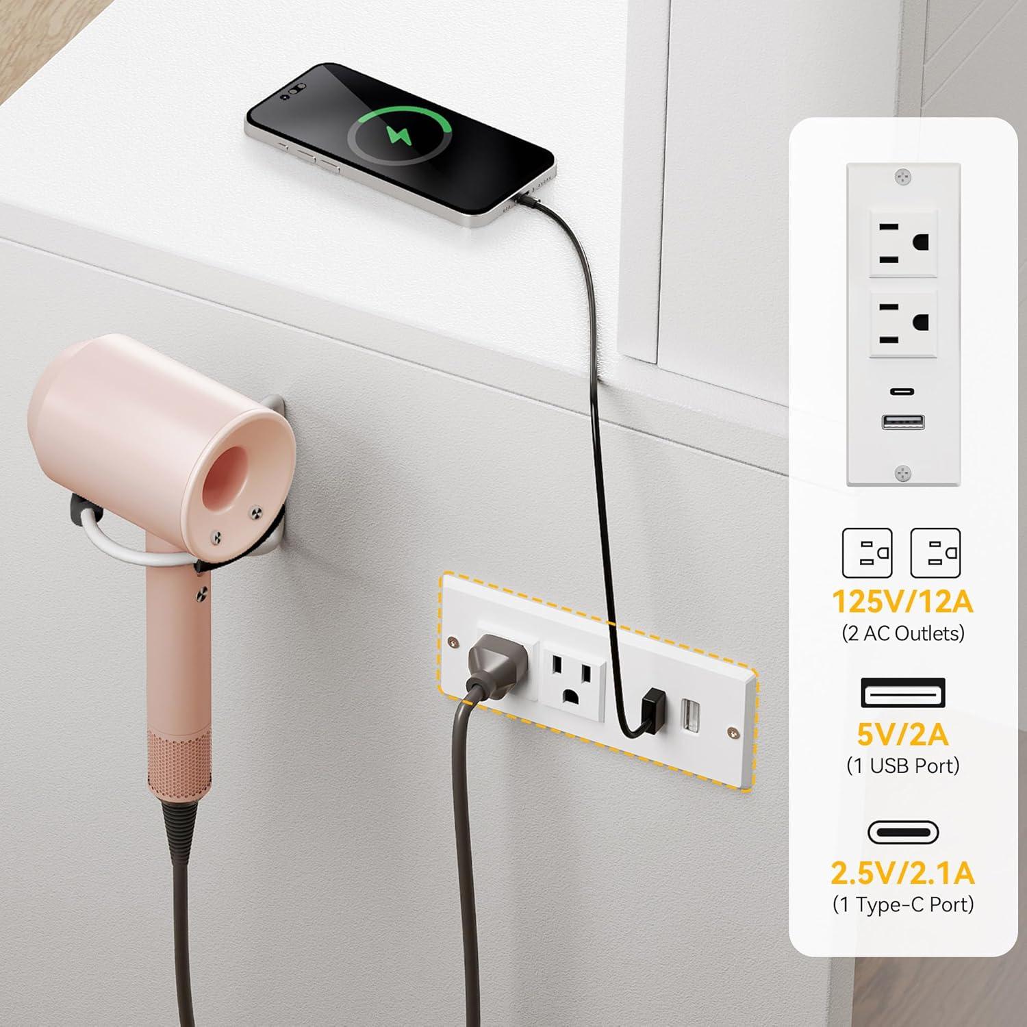 Charging Station & Styling Hub​ – Equipped with ​2 USB ports, and 2 AC outlets, this ​vanity with charging station​ powers your devices and beauty tools simultaneously. The built-in tool holder keeps hot styling wands safely accessible yet neatly stored during use