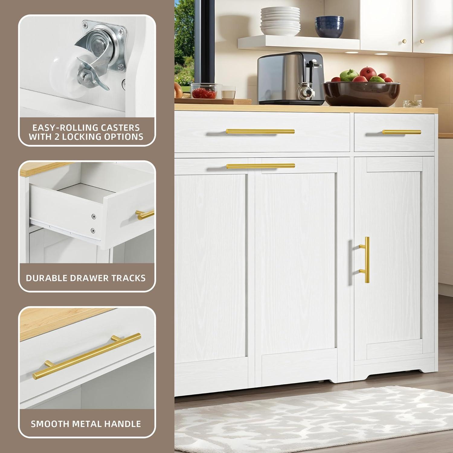 Convenient Power Supply: Our versatile island cart features built-in power outlets. Now, charging devices or cooking gadgets is as easy as pie! Enjoy seamless meal prep and entertaining without worrying about power