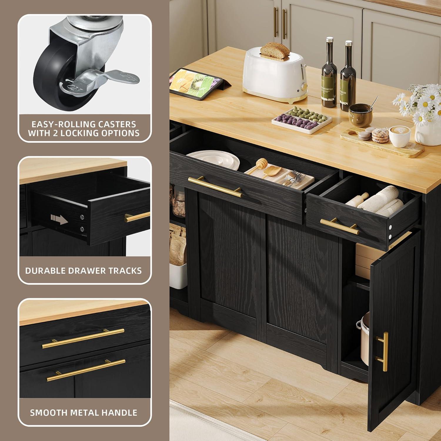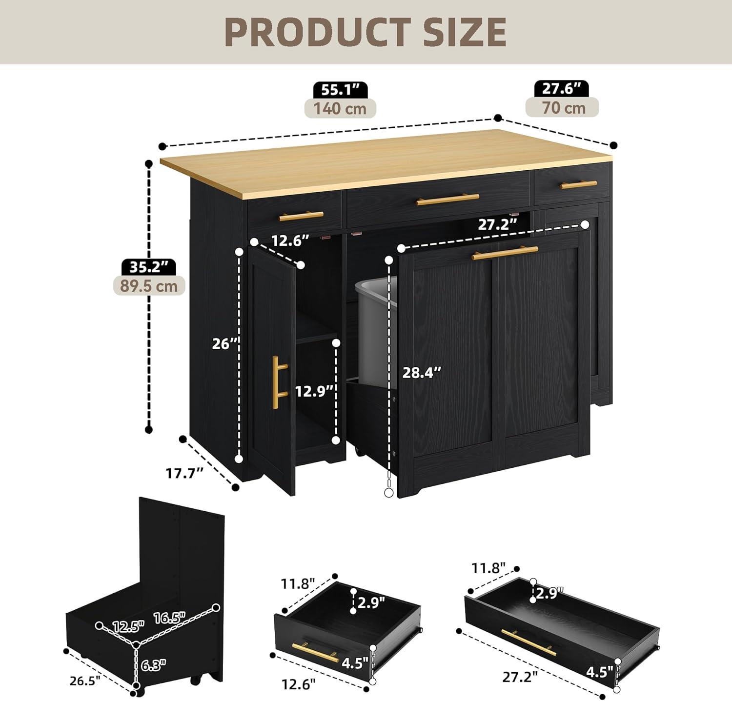 Convenient Power Supply: Our versatile island cart features built-in power outlets. Now, charging devices or cooking gadgets is as easy as pie! Enjoy seamless meal prep and entertaining without worrying about power