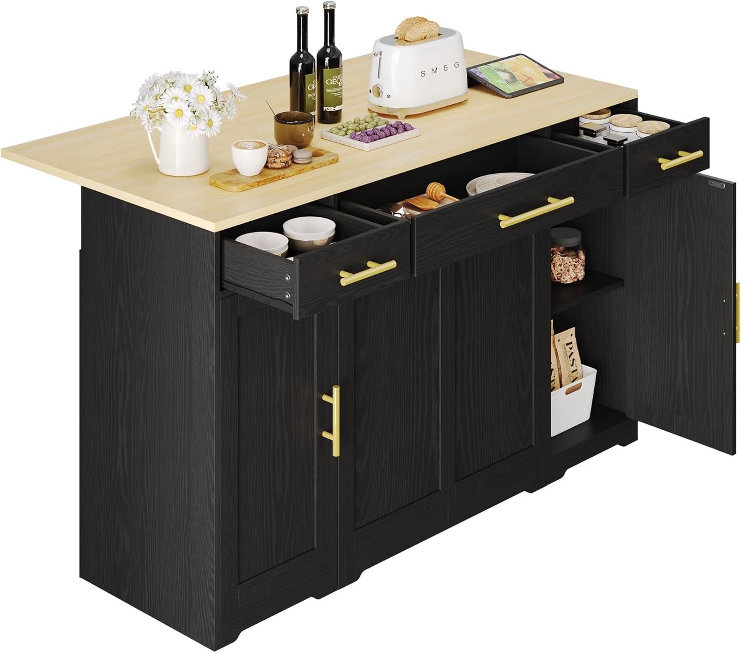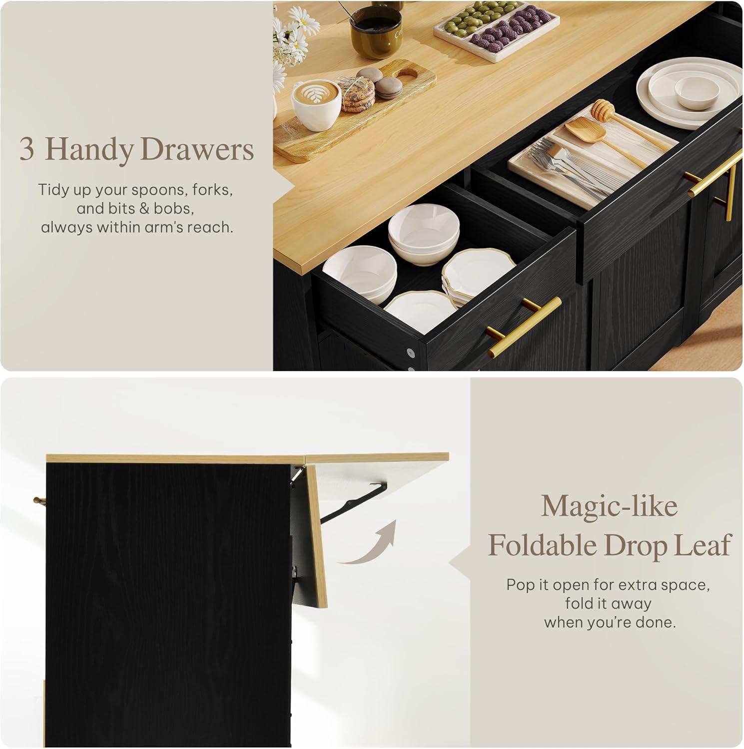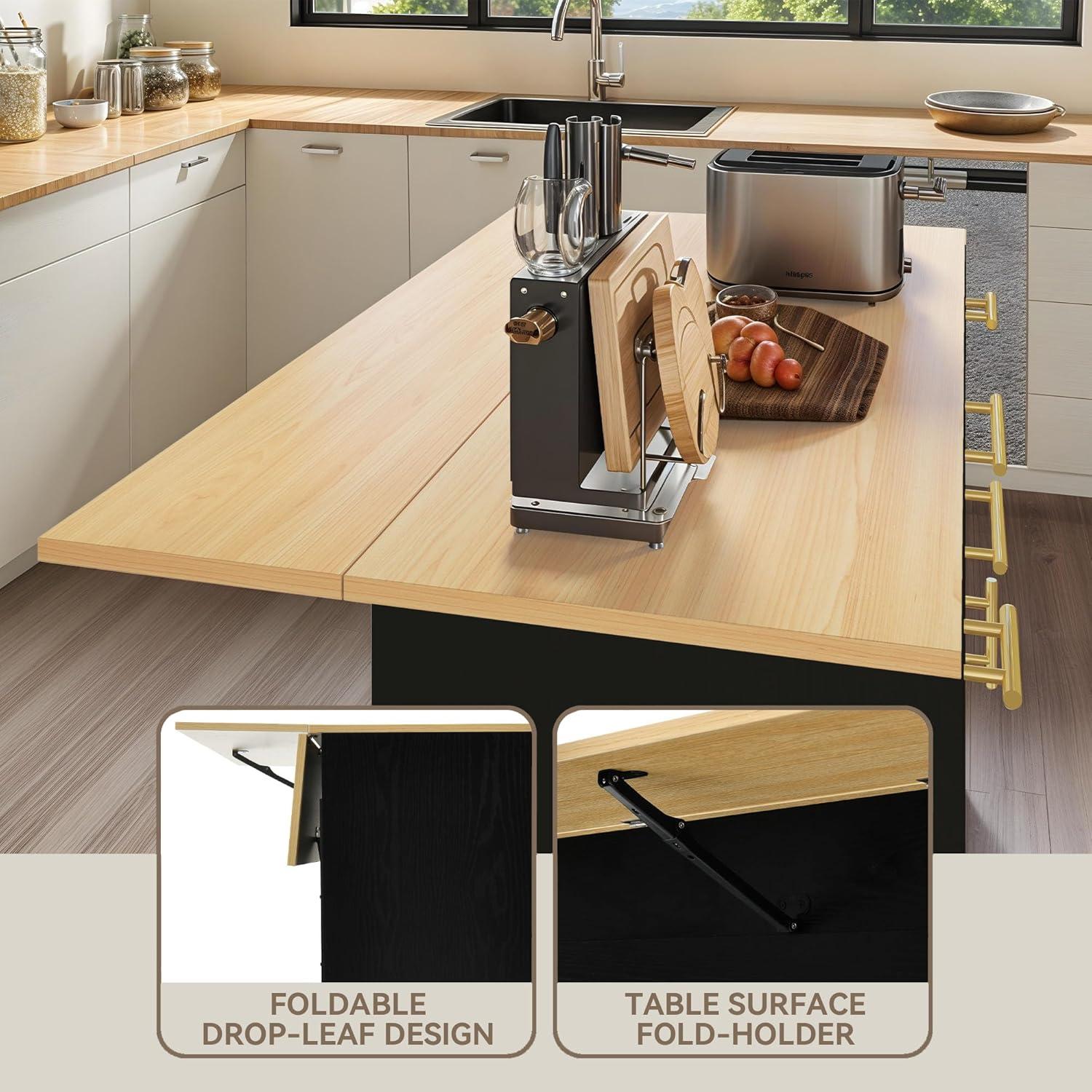 Folding Island: Our kitchen island transforms like magic with its foldable design. Use it as a spacious dining table or a compact kitchen island whenever you need extra space. Hidden buckles ensure secure locking of the drop leaf panels