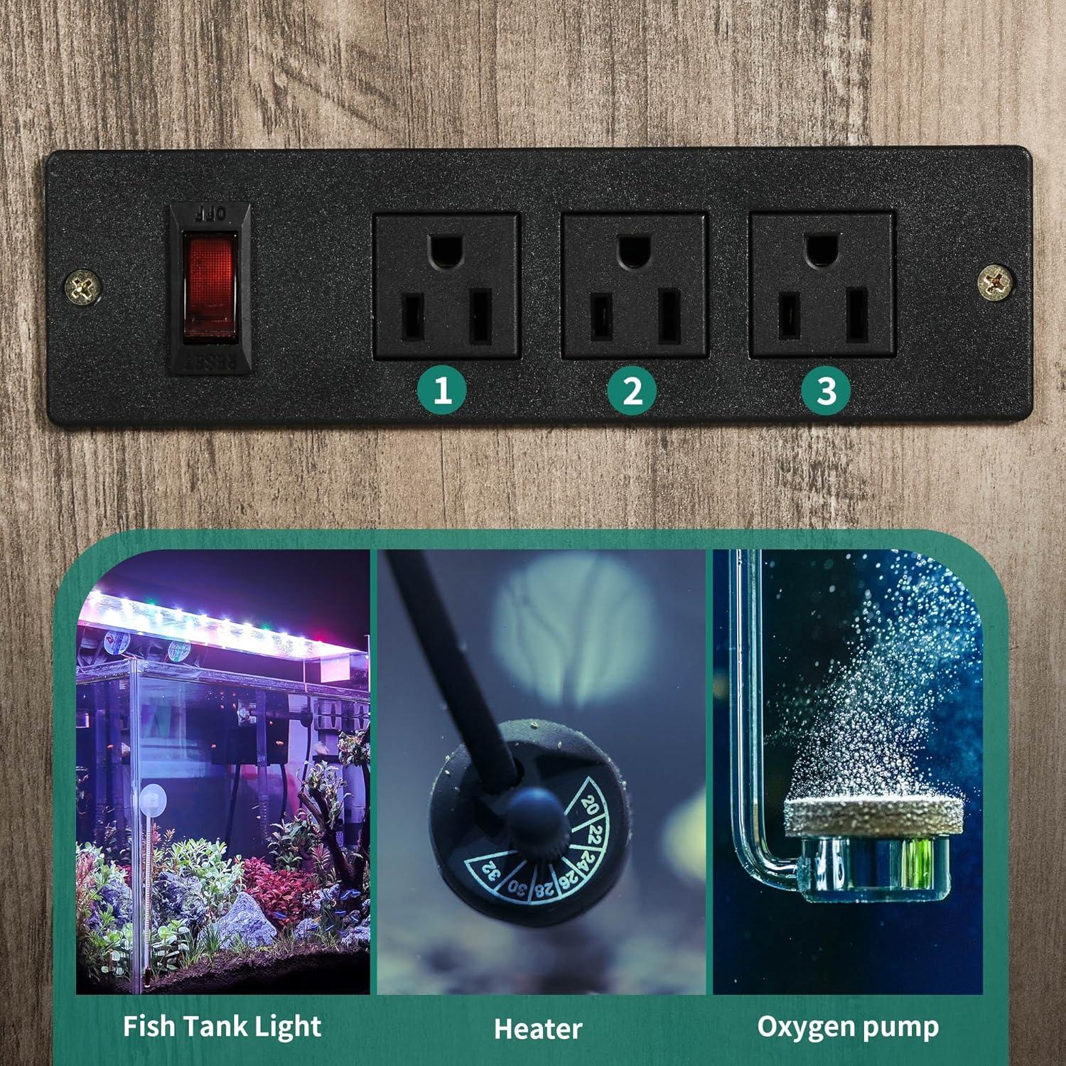 Practical Functionality: Enhance your fish tank setup with integrated power outlets for easy electronic device connections. No extra tools required, simplifying the management of lights, heaters, and oxygen pumps