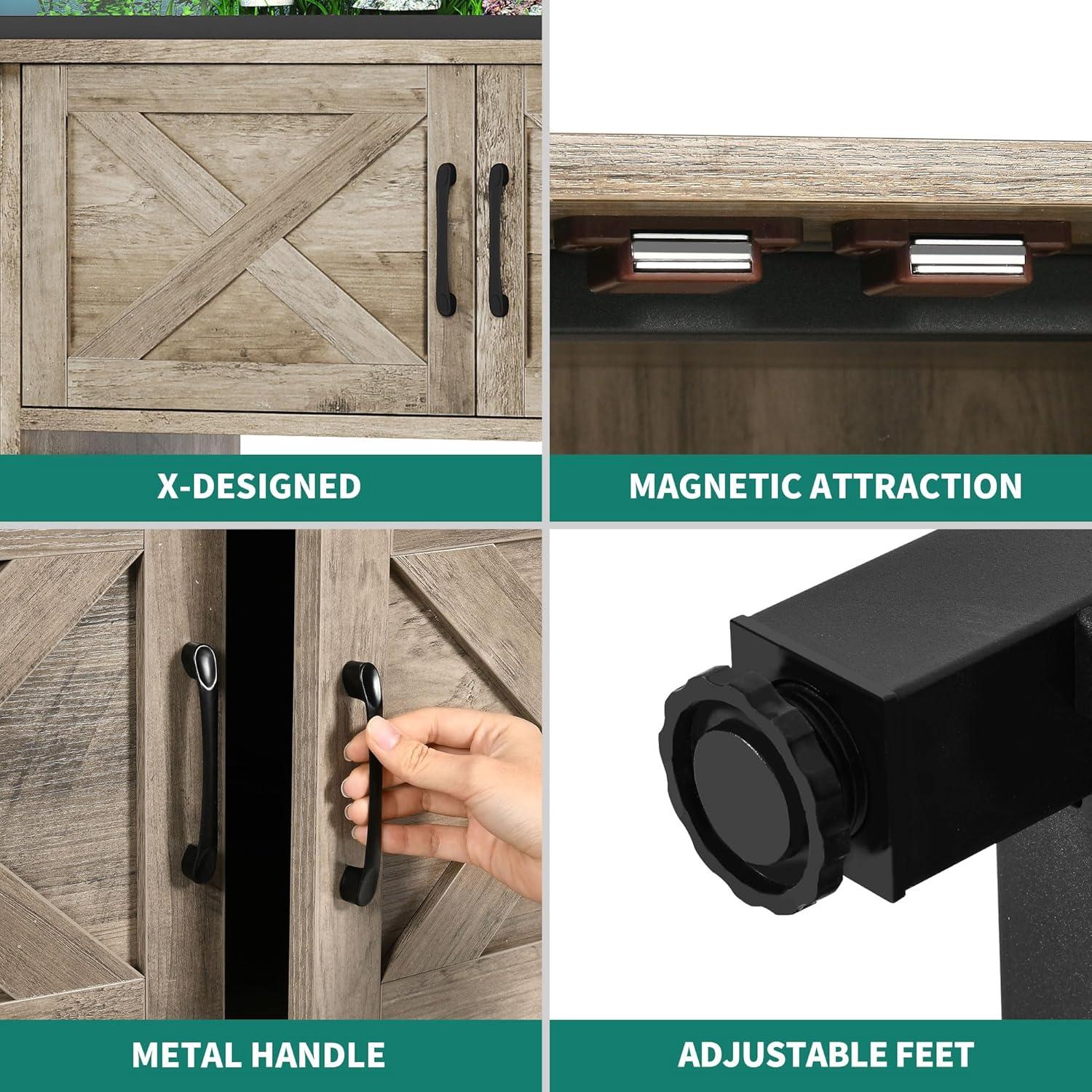 Dual-Purpose Design: Optimize space with our stand accommodating a 40-50 gallon tank on top and a 20-gallon below. Organize essentials effortlessly in the built-in cabinet with adjustable shelves