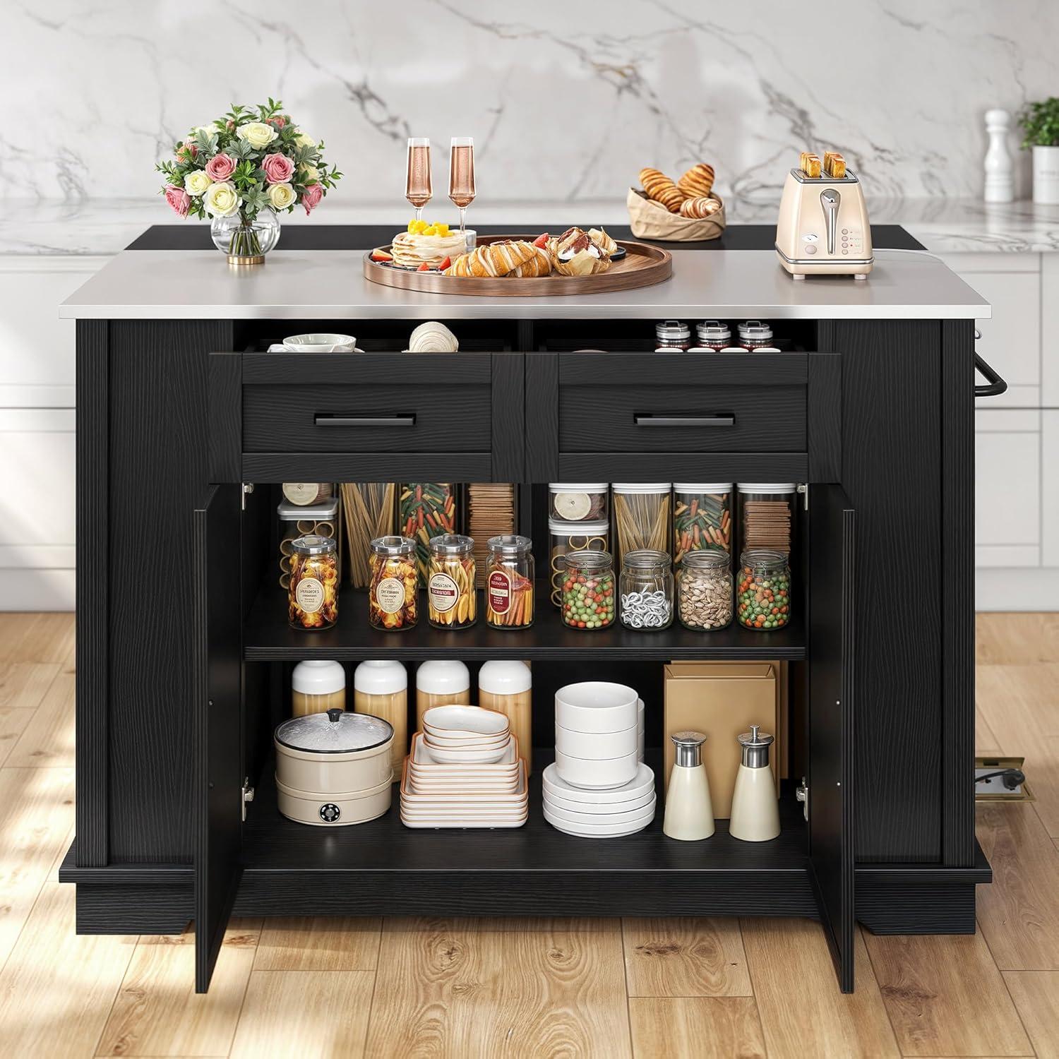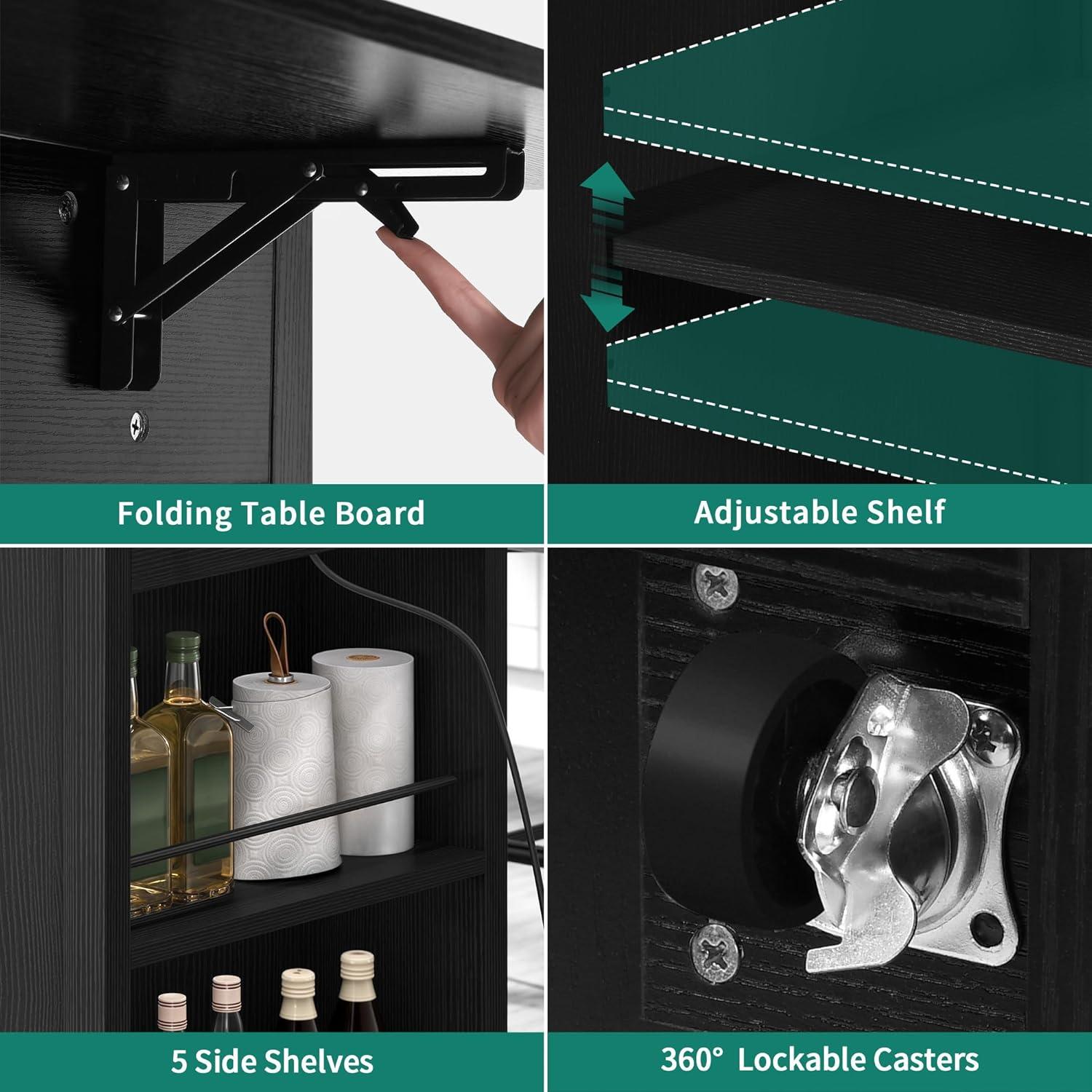 Integrated Power Outlet: Stay connected while cooking with a built-in power strip featuring 2 AC outlets and 2 USB ports. Charge your devices or power small appliances, making your kitchen island cart as tech-savvy and efficient as you are