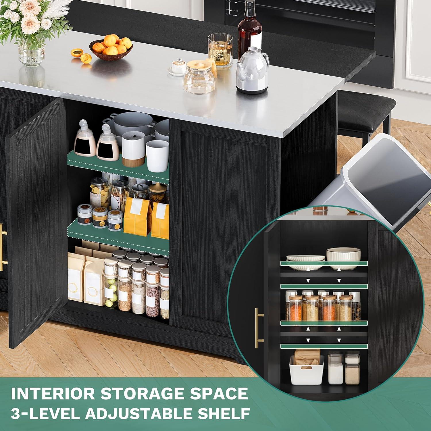 Kitchen Islands with Large Storage Space: This kitchen island features large storage cabinets and two large drawers. There is a 2-level storage shelf and drawer on the side of the cabinet. Wide countertop and adjustable shelf supply ample space for your storage need, ideal for store tableware, kitchenware, spices, towels and kitchen electrical appliance etc
