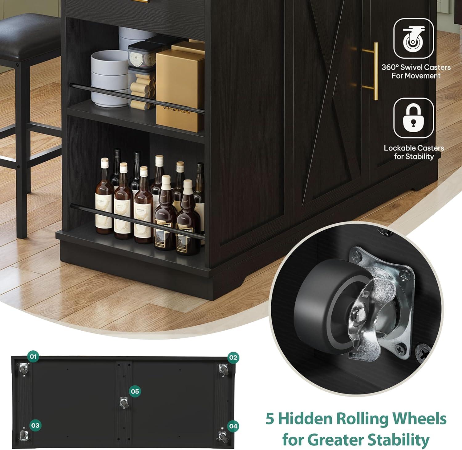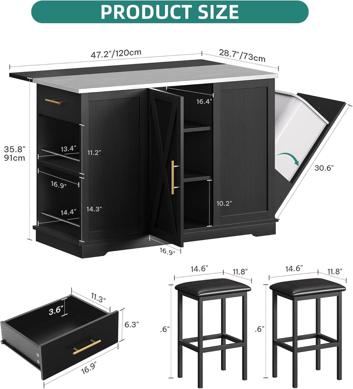 Mobile Kitchen Islands include 2 Chairs: This island includes 2 bar stools with soft cushions upgrade, allowing you to relax your legs and feet when seated. These stools are robust and dependable, offering users a soft seating option. The whole set is designed in a seamless, integrated fashion. Helping to create a professional-level home cooking workstation.
