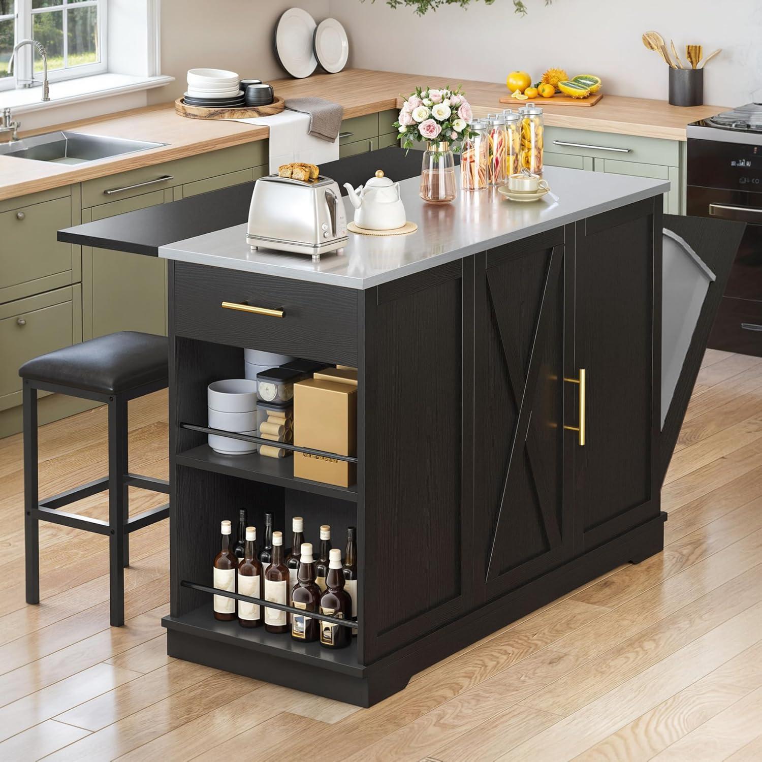 Tilt Out Trash Can Cabinet: The garbage bin storage cabinet is a great addition to your kitchen island. It can house a 13-gallon trash can (not included), preventing the spread of odors and keeping your kitchen & dining room fresher and cleaner.