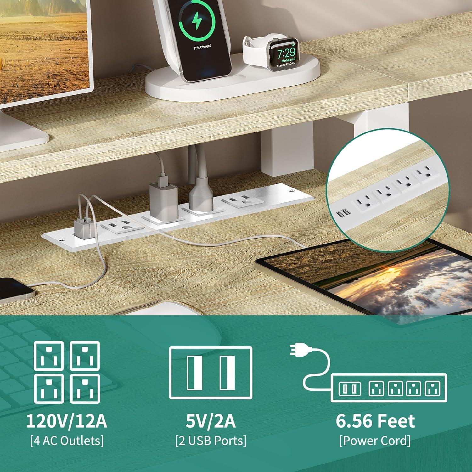 Convenient Charging Station: This L shaped computer desk with drawers features 2 USB ports, 4 power outlets & a 6.56ft power cord to charge your laptop, tablet, printer and other devices, making your life easier