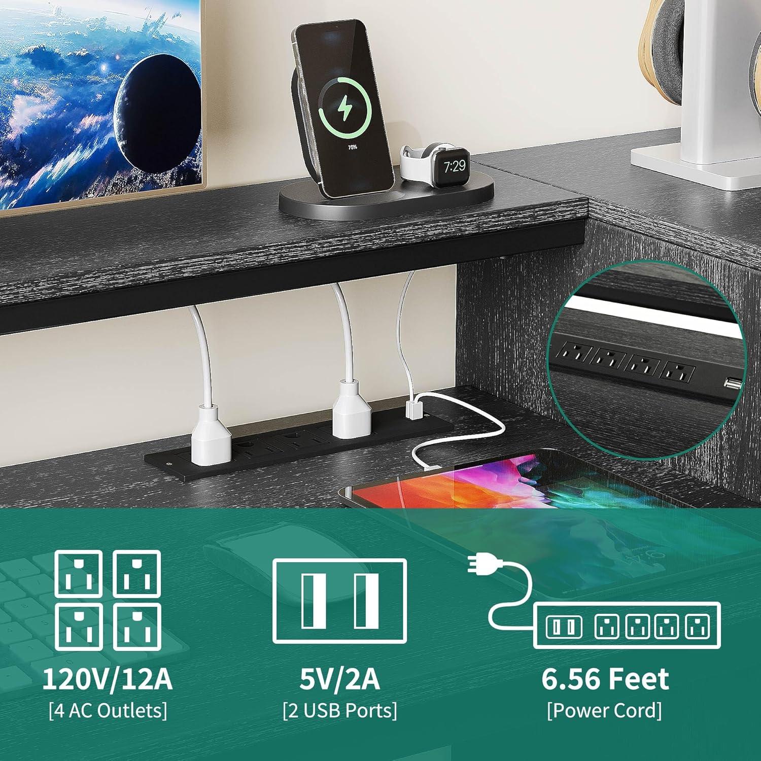 Convenient Charging Station: This L shaped computer desk with drawers features 2 USB ports, 4 power outlets & a 6.56ft power cord to charge your laptop, tablet, printer and other devices, making your life easier