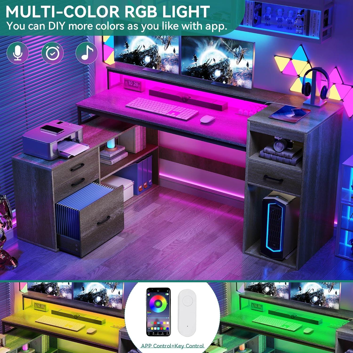 Cool LED Light Strips: Our L-shaped desk features a beautiful RGB LED light strip, flexibly controlled by a phone app or light strip switch, and you can customize any color you like via app. Plus, choose from various modes including music sync, built-in Mic and timer functions to increase the mood and inspire creativity while working