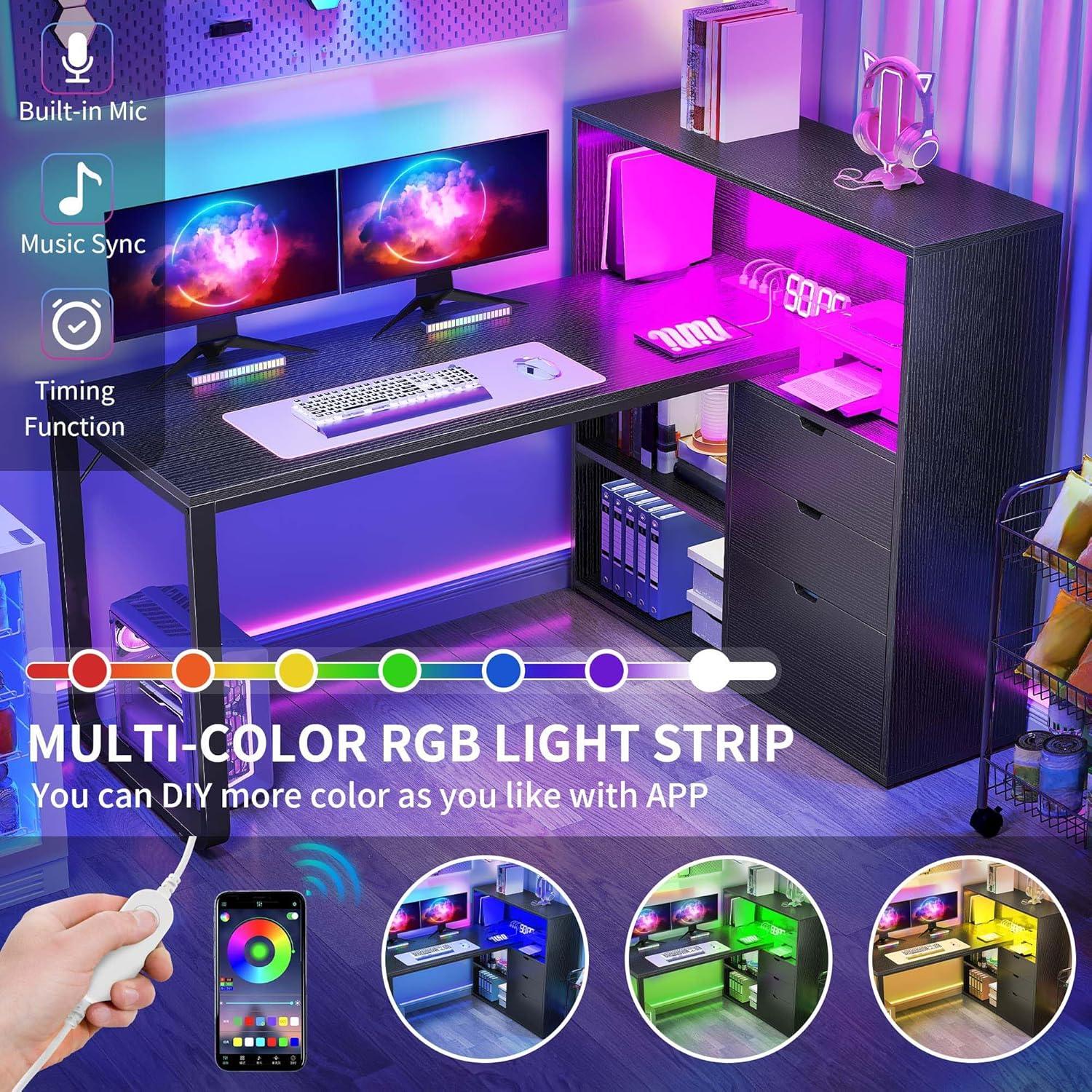 Cool & Smart LED Light Strips: Our L-shaped desk features a beautiful RGB LED light strip, flexibly controlled by a phone app or light strip switch, and you can customize any color you like via app. Plus, choose from various modes including music sync and timer functions to enhanced the mood and inspire creativity while working