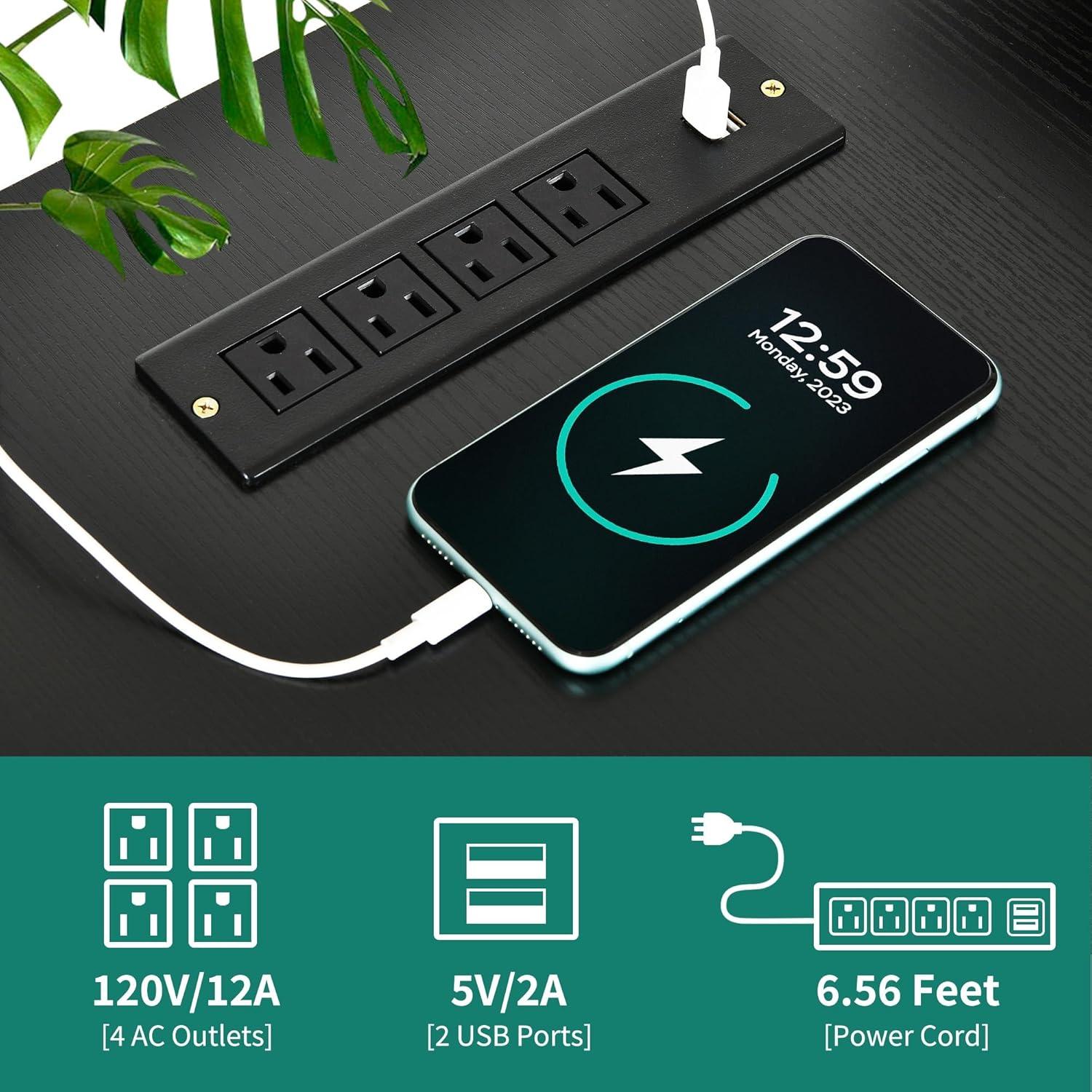 Convenient Charging Station: This L-shaped computer desk features 2 USB ports, 4 power outlets & a 6.56ft power cord to charge your laptop, tablet, printer and other devices, making your life easier