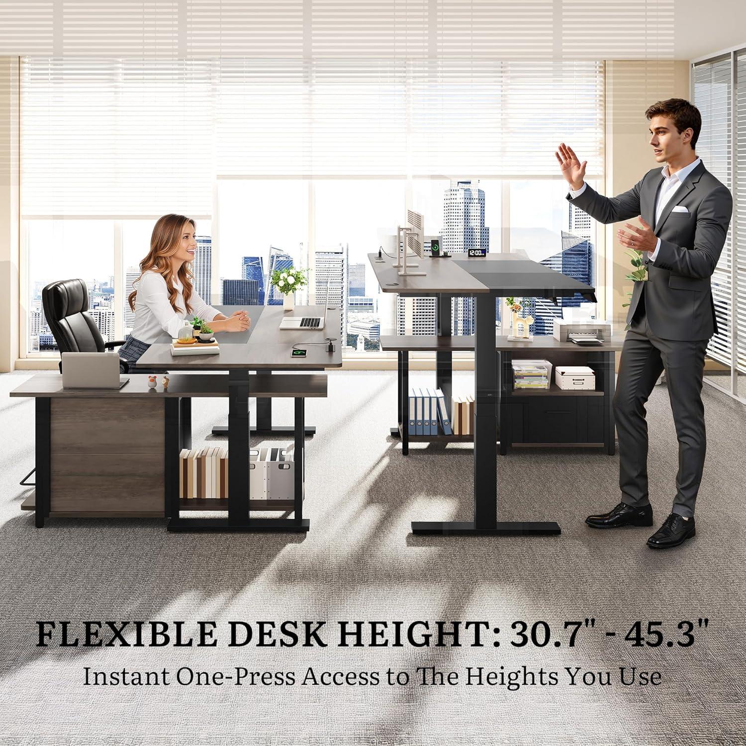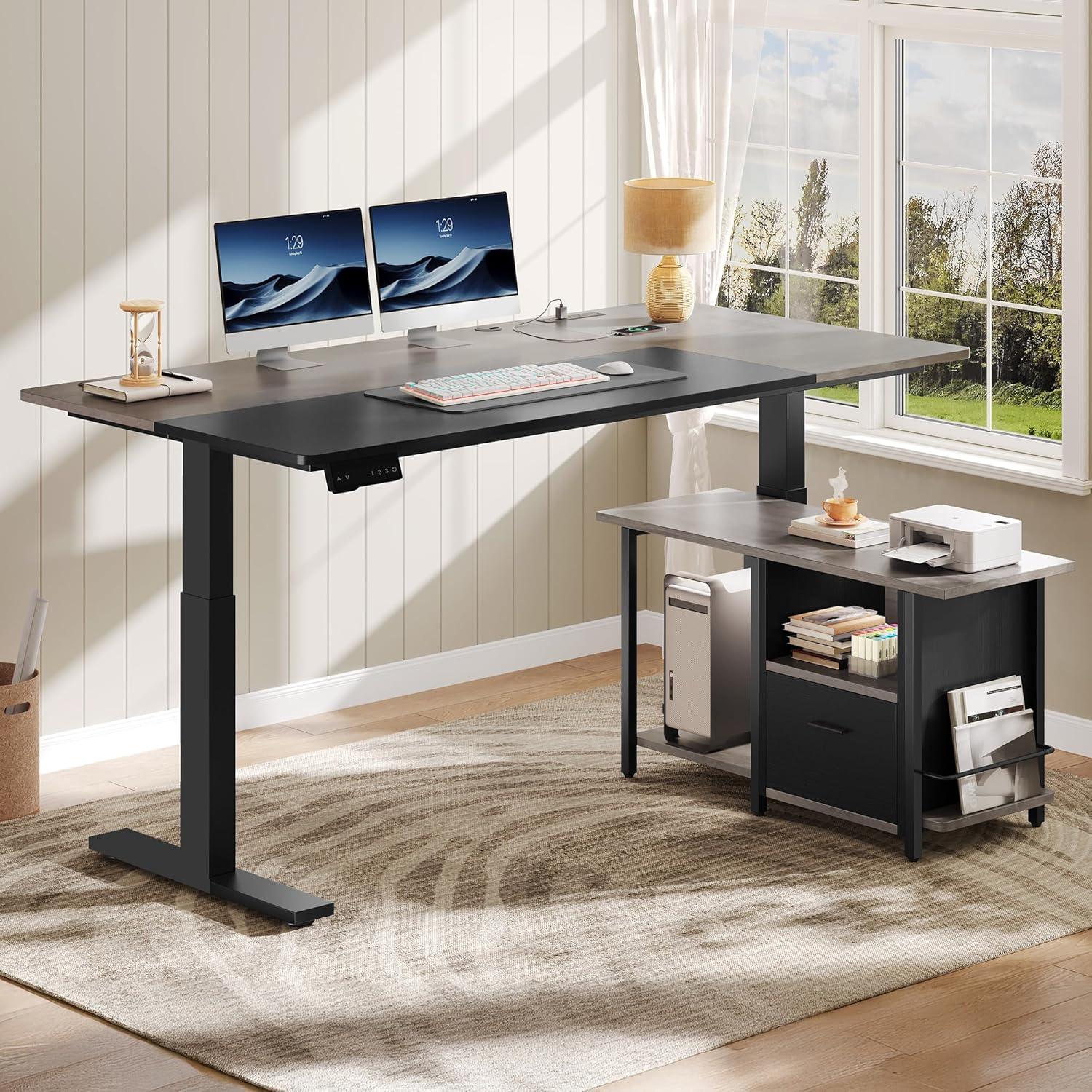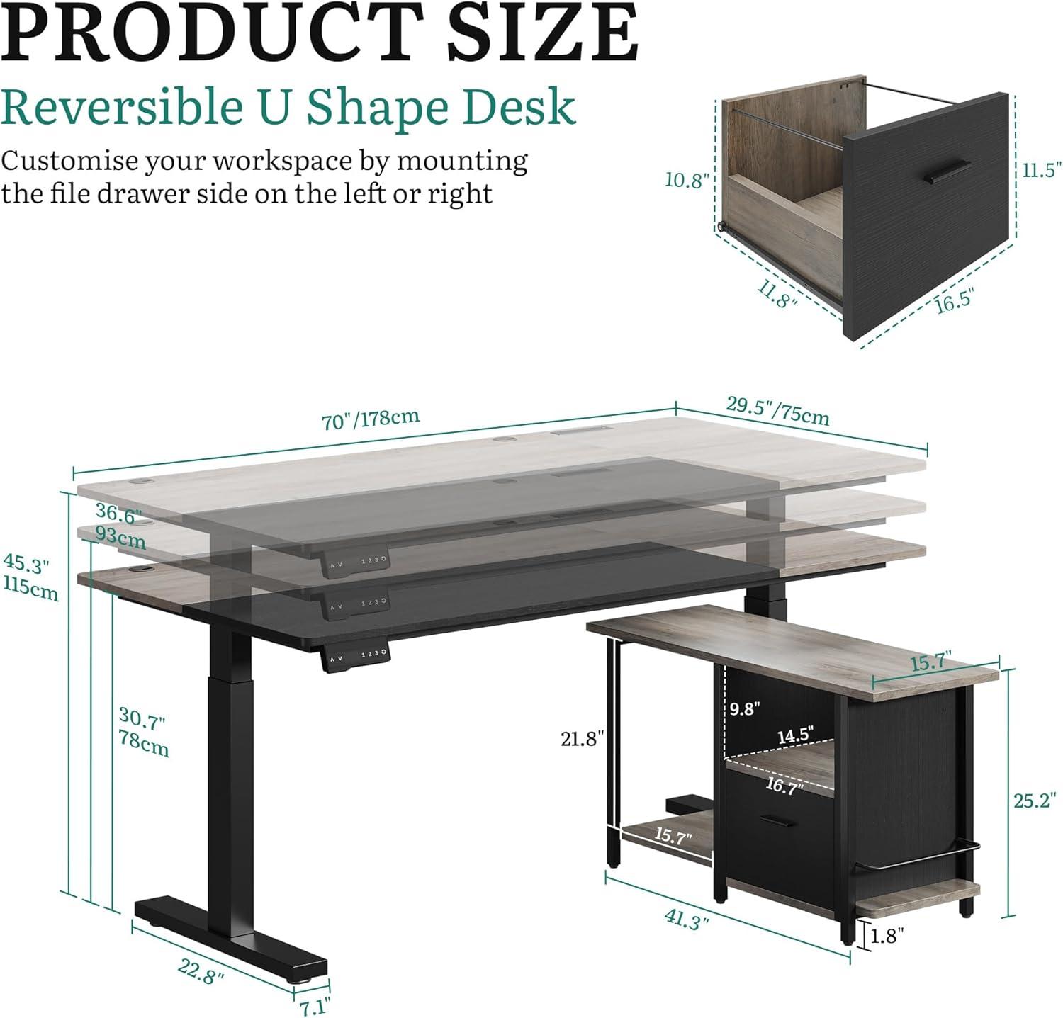 Maximize Workspace: Enjoy spacious working space with our L shaped standing desk executive desk with a wide desktop of 70.1″L x 29.5″W, and this electric standing desk provides plenty of room for multiple monitor and laptop setups, important work projects and office supplies. Plus, the 56″L x 15.7″W desktop of file cabinet provide ample space for printer and other home office supplies