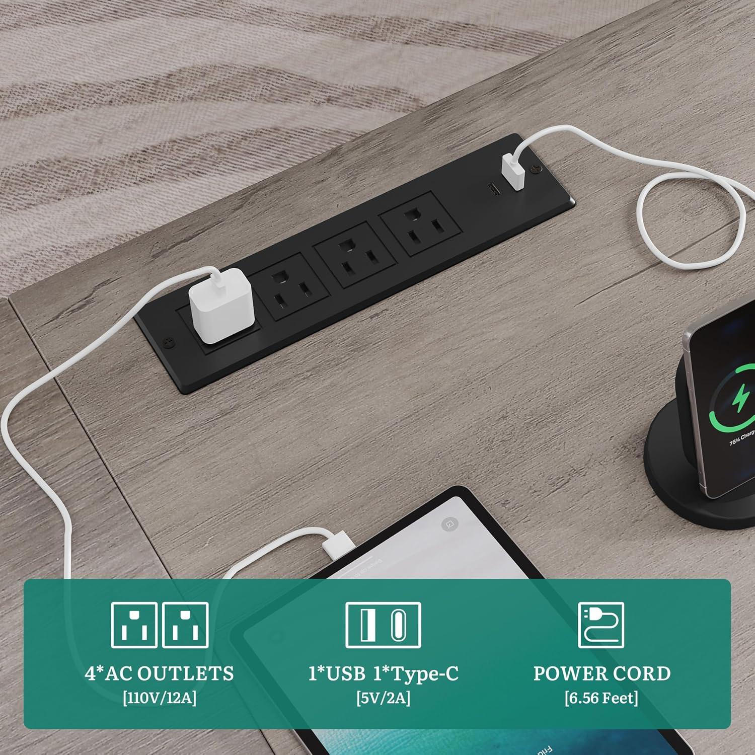 Electric Standing Desk with Power Outlets: YITAHOME L shaped standing desk with drawers is equipped with 4 outlets & 1 USB ports & 1 type-C ports to charge your phone, laptop, tablet and other devices