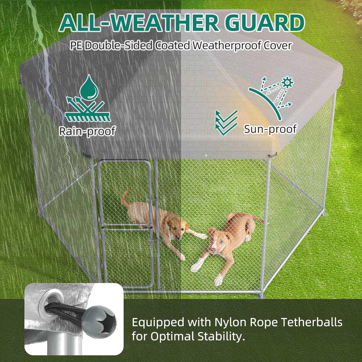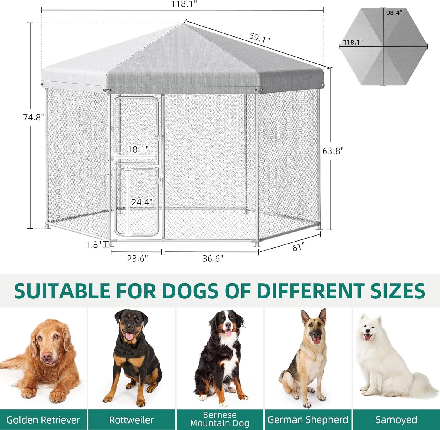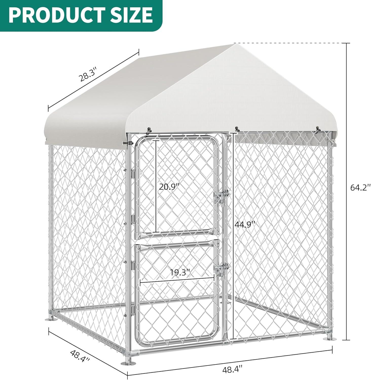 Larger Space for Dog Play – YITAHOME Large dog kennel with 4.03×4.03×5.4FT dimension, give your lovely pets enough safe space to exercise and play without having to worry about your pets being depressed because they are locked in the house all day! By the way, it also protects your garden