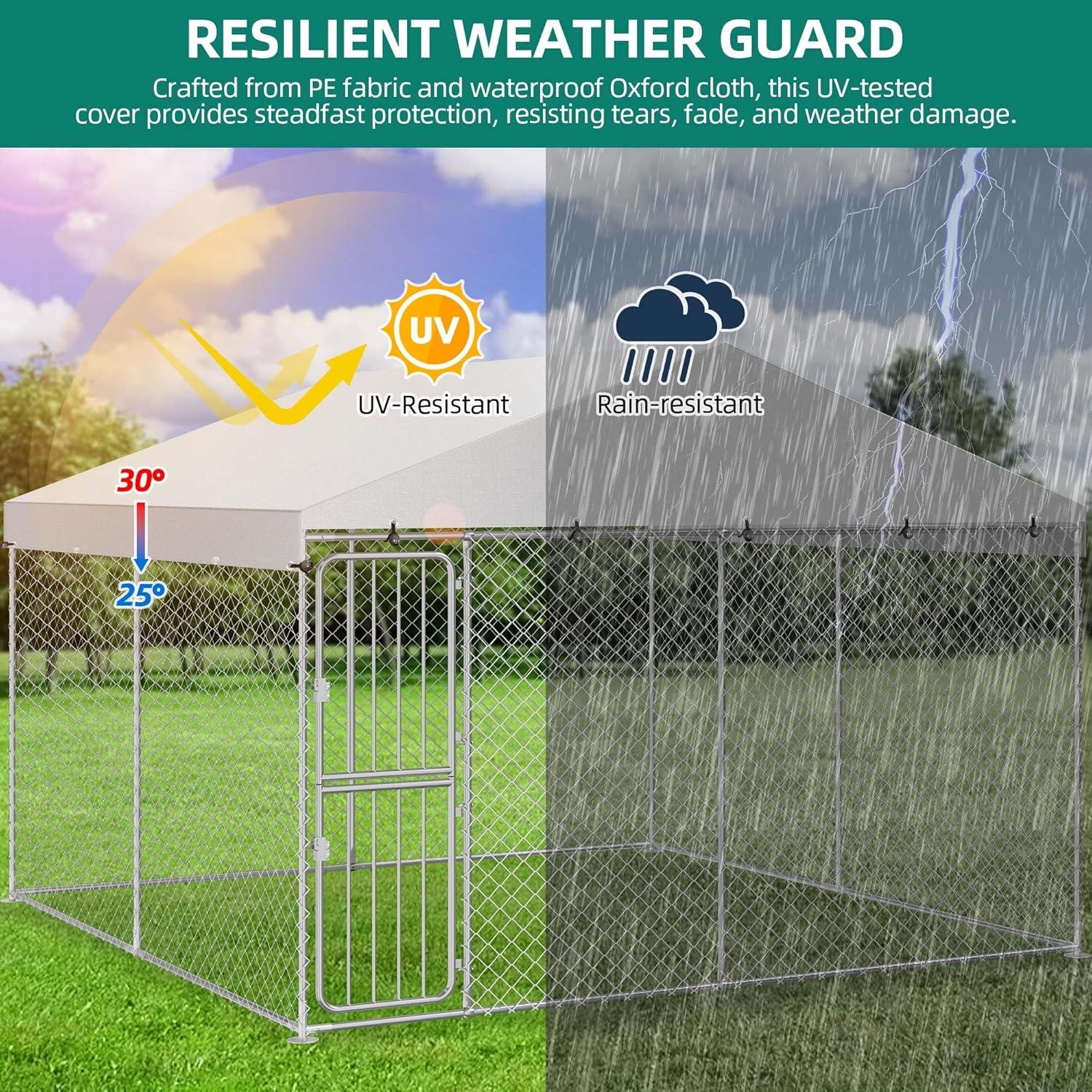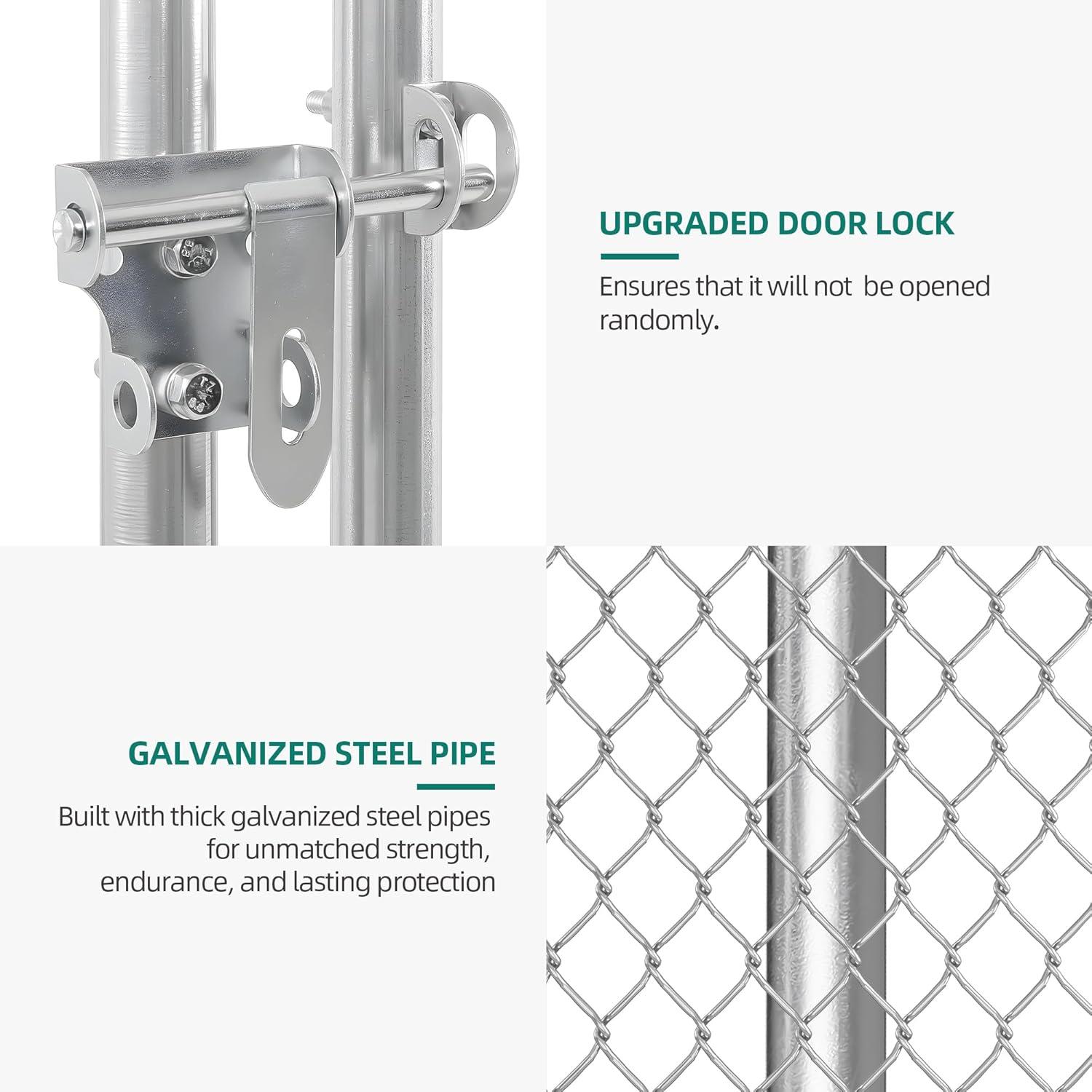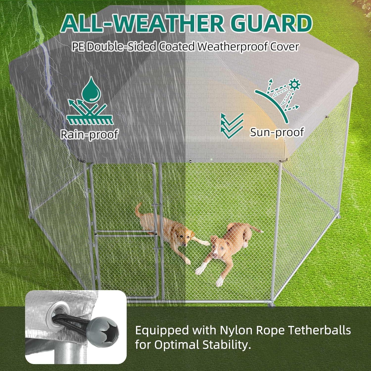 Outside Dog Kennel with Roof – The outdoor dog run is equipped with a waterproof and UV-proof cover, a sloped roof allows water and snow to run off instead of pooling on the roof. And the roof is covered on all sides to effectively protect your dog from the rain