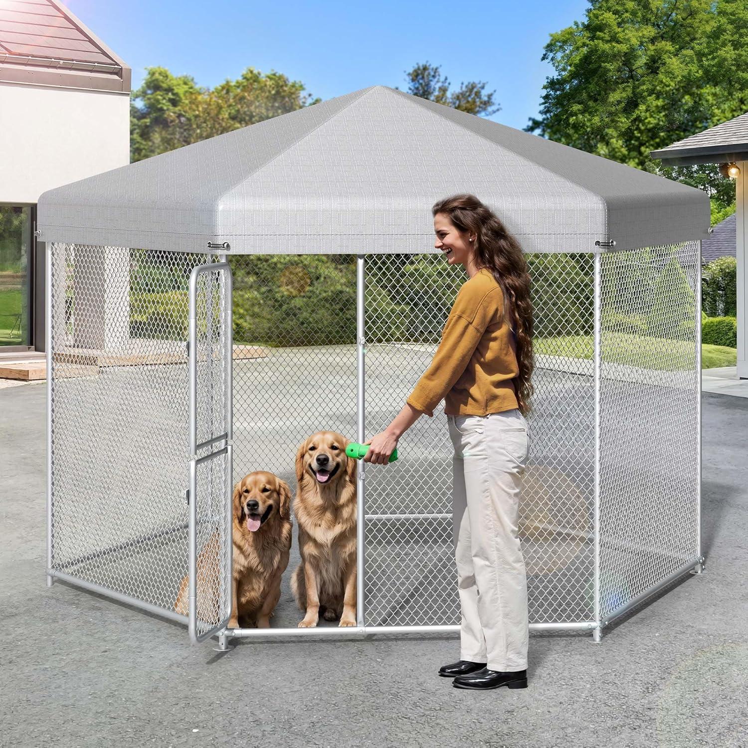 Reinforced Dog Kennel – YITAHOME Dog houses for large dogs outside completed with tough galvanized metal to ensure stability, thick and solid, without any sharp points which may harm your pets