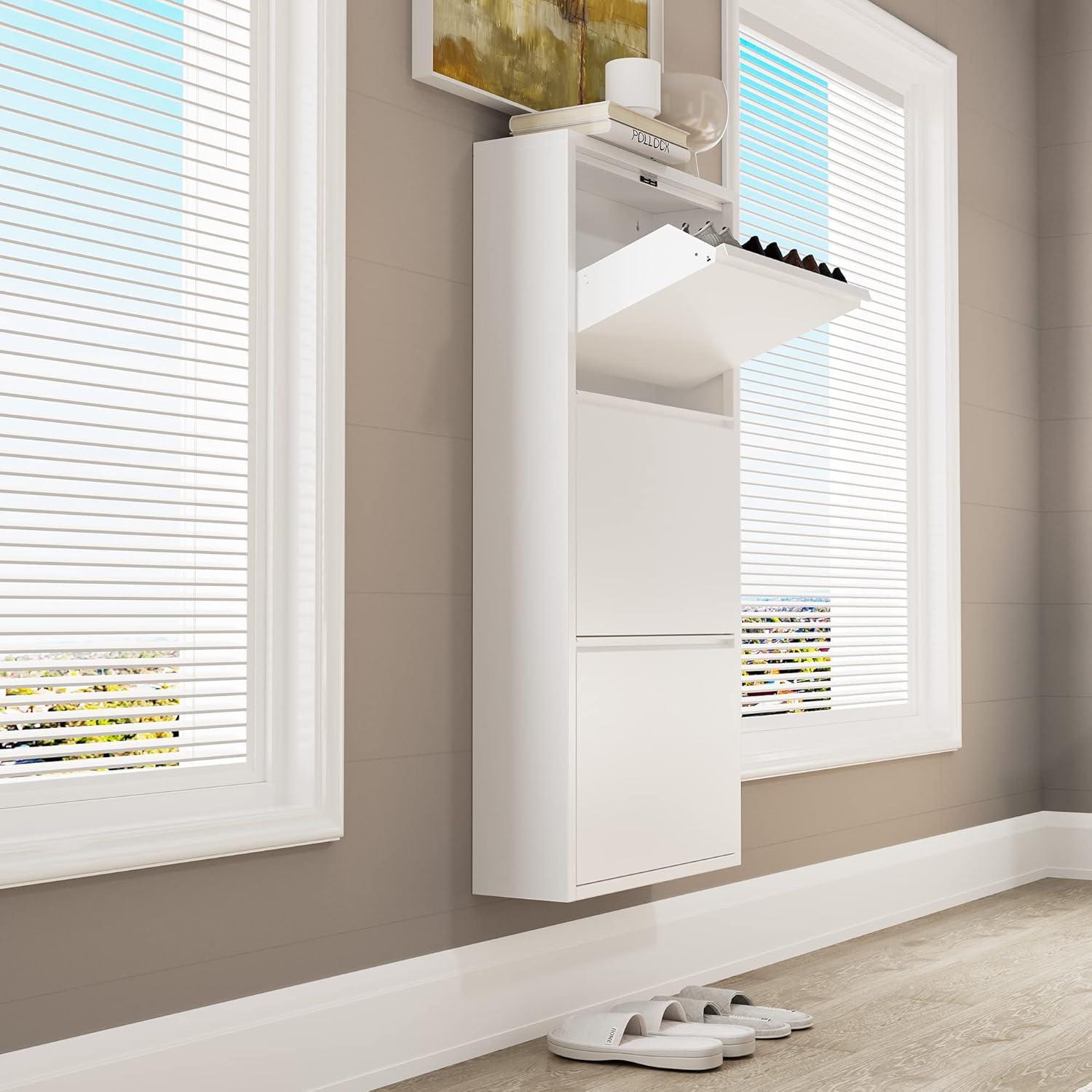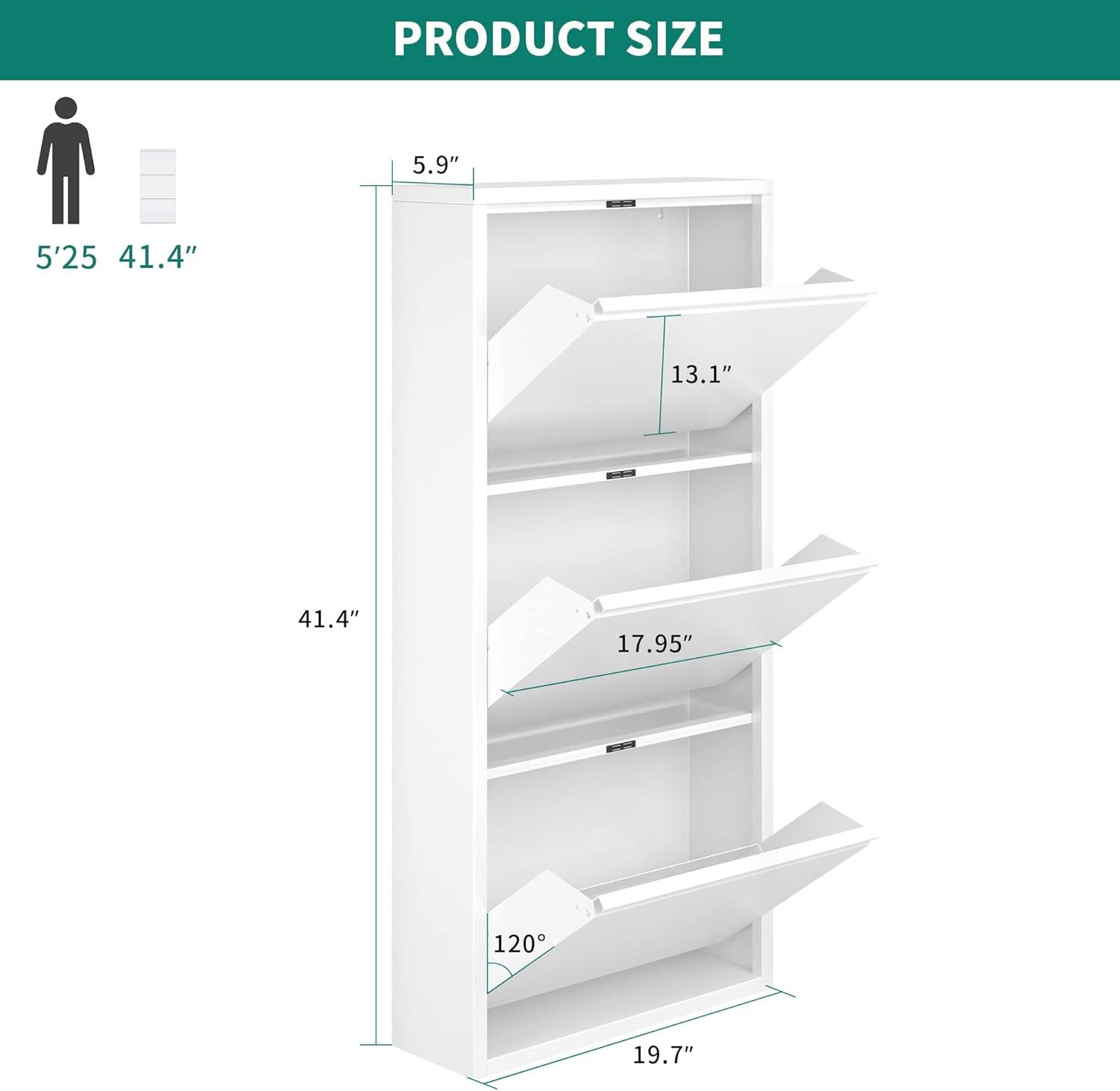 [Wall Mounted Narrow Cupboard]: 5.9-inch wide tilt-out shoe storage cabinet saves space while providing better organization for shoes of various sizes; Can also be anchored to the wall to prevent tipping over when opening the top drawer