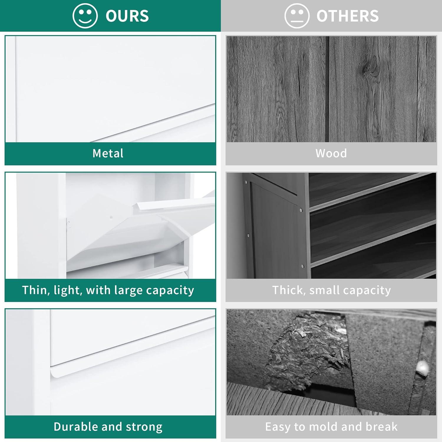 [High-quality Material]: The shoe cabinet is made using 0.03inch thick cold rolled steel that is tough and won’t deform; The cabinet’s back interior is welded with reinforcement plates for extended lifespan