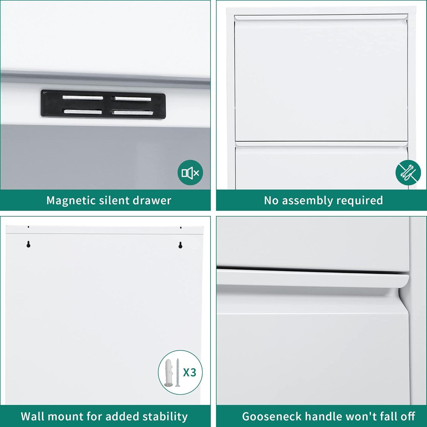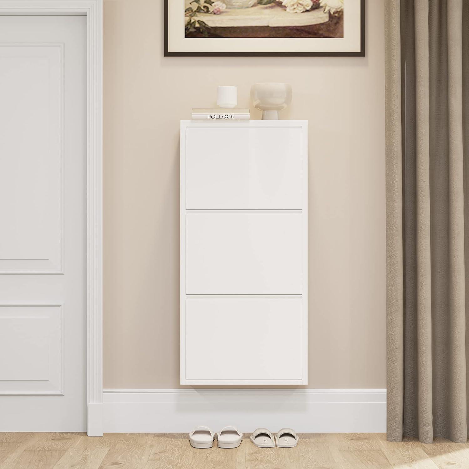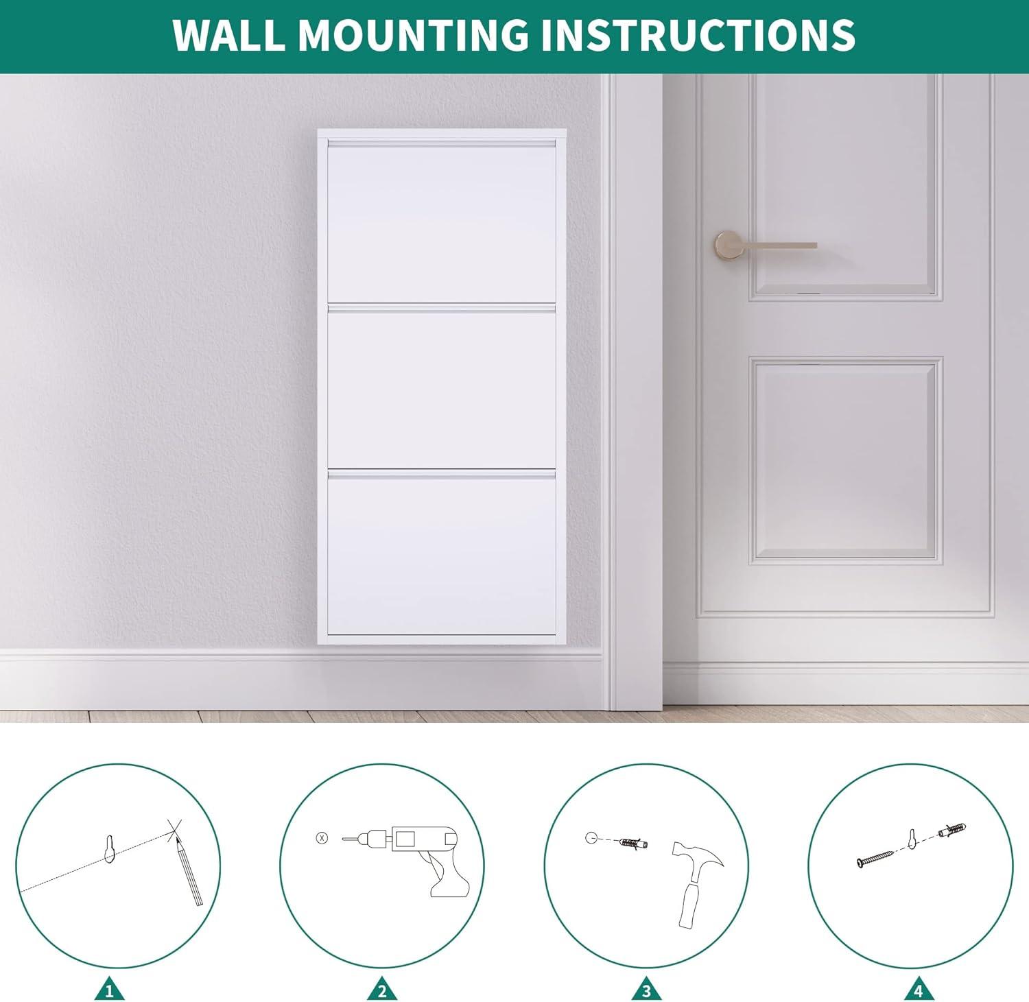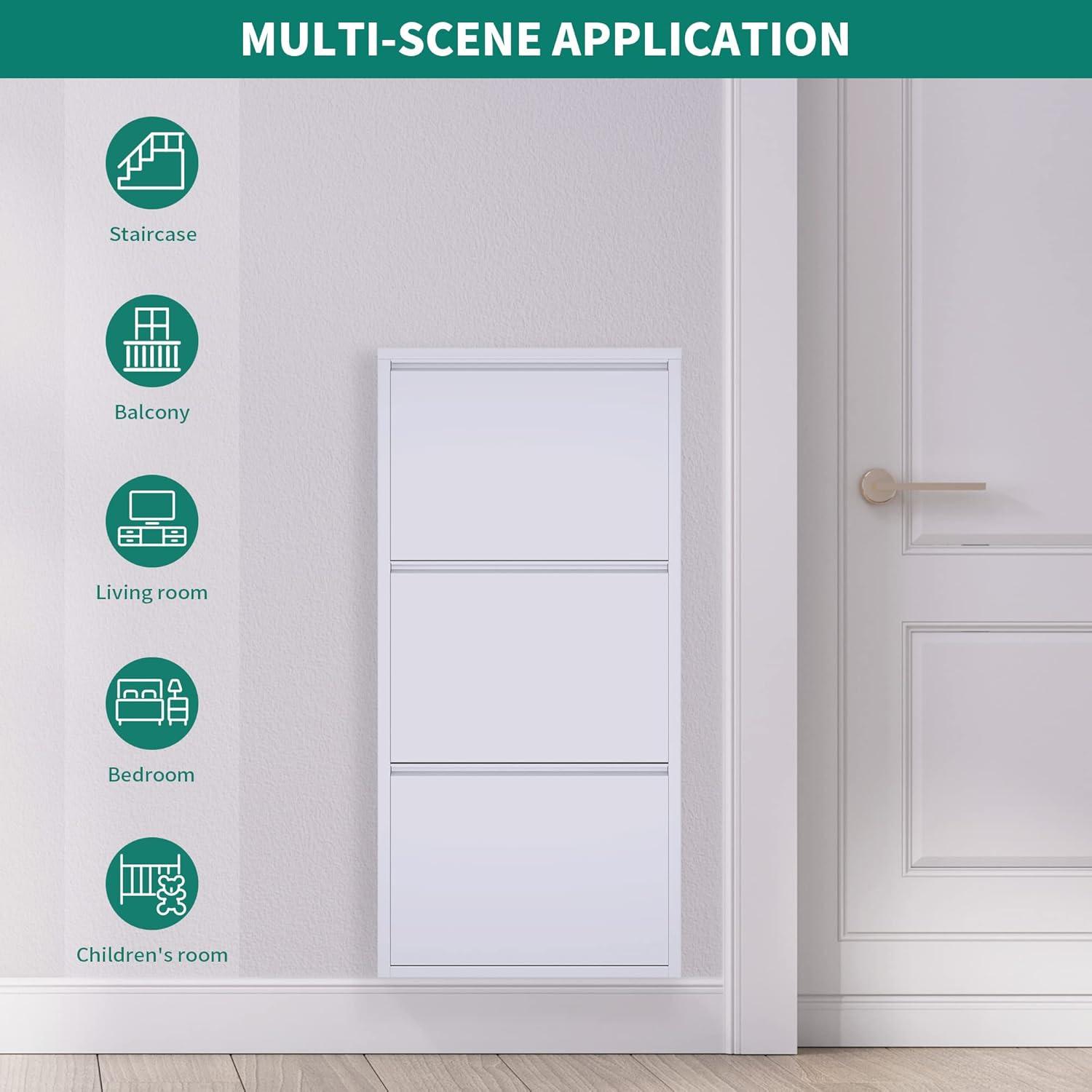 YITAHOME Metal Shoe Cabinet with 3 Flip Drawers, Wall Mounted & No-Assembly Steel Shoe Storage Cabinet
