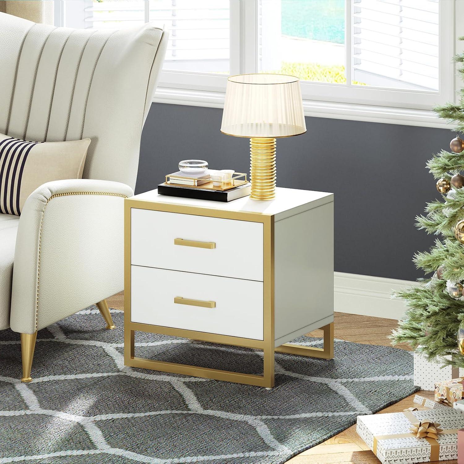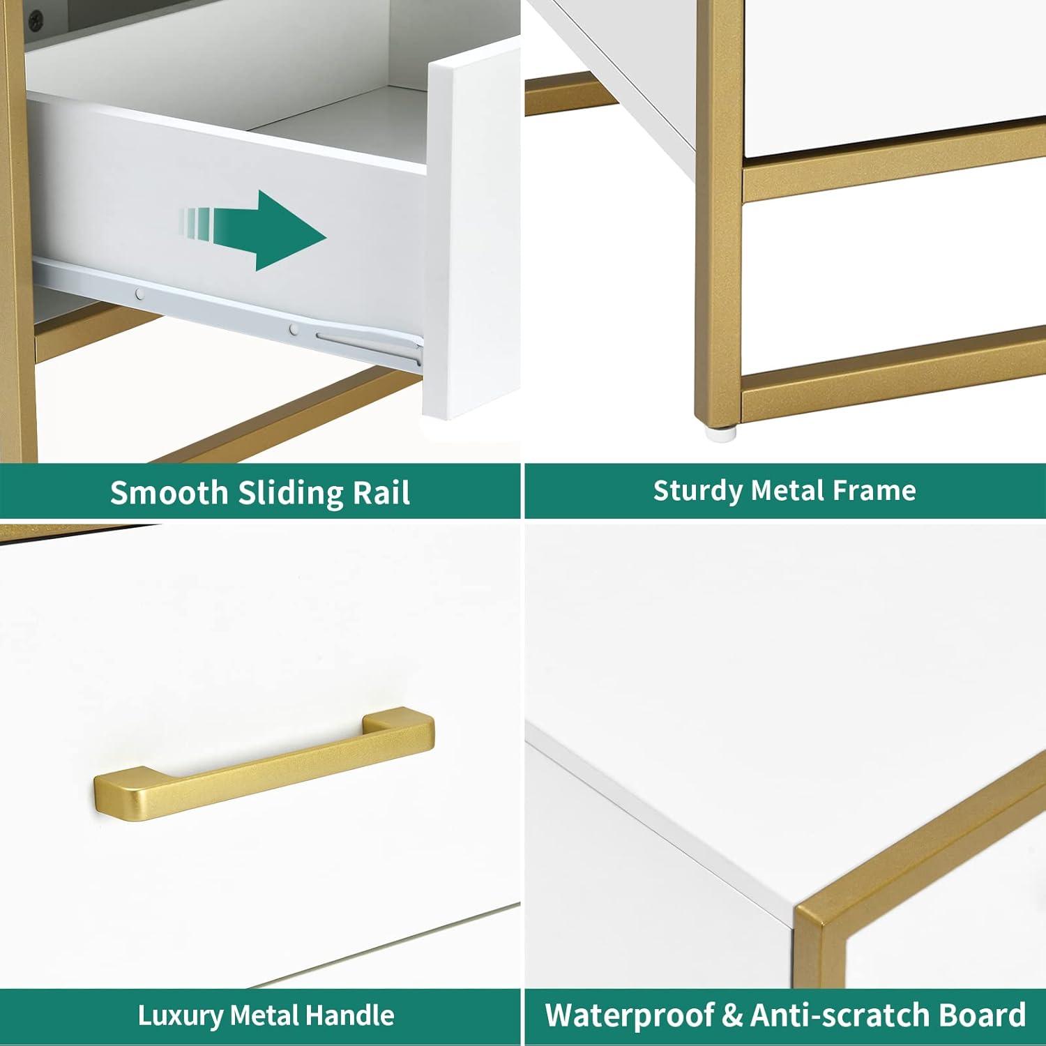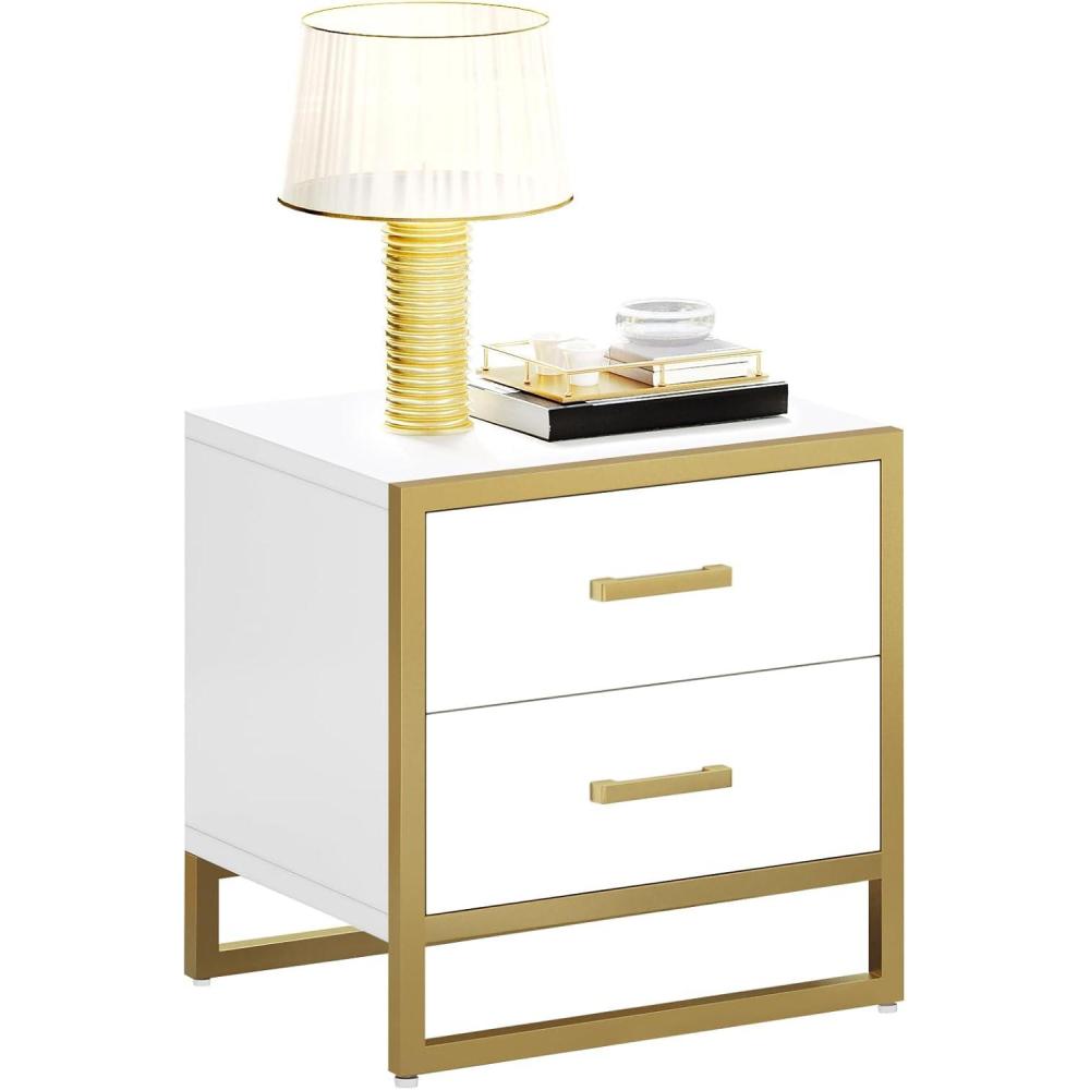 imageYITAHOME Nightstand with Charging Station Night Stands with 2 Drawers for Bedroom Modern Bedside Table End Side Table with USB Ports and Outlets Set of 2 BlackWhite Gold