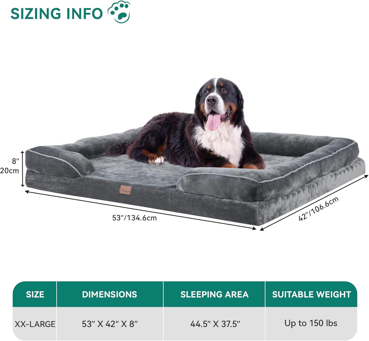 【MULTIPLE SIZES】5 sizes to choose from: Medium dog bed for medium dogs up to 30LB, large dog bed for dogs up to 50LB, X-Large dog bed for dogs up to 90LB. Jumbo Dog Bed for dogs up to 150LB of all ages. Please refer to our recommended weights and sizes for a more comfortable sleeping environment for your fluffy family.