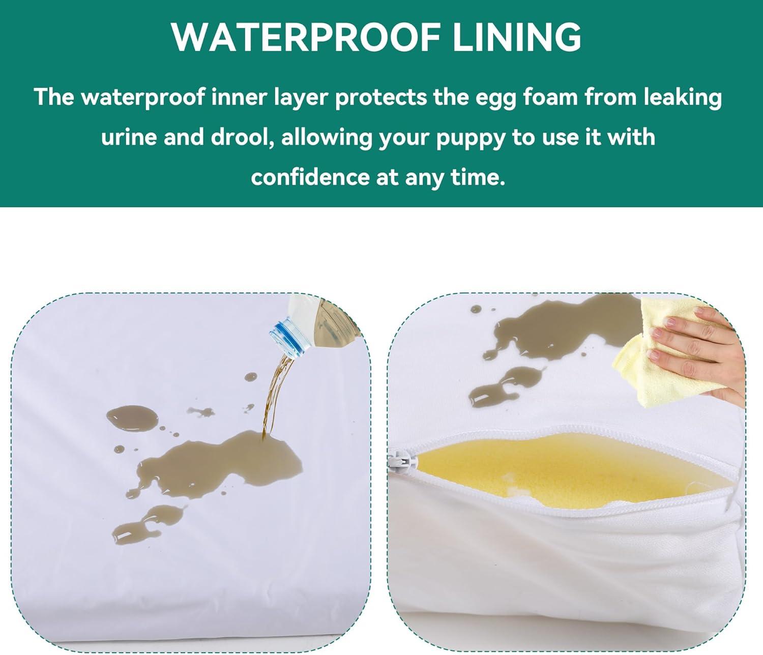 【WATERPROOF & EASY CARE】Waterproof PU lining fully protects the foam from spills, water damage or accidents. The zipper is easily removable, you can remove the cover in just a few seconds and then wash it in the washing machine for easy care. Note: Do not machine wash the foam liner.