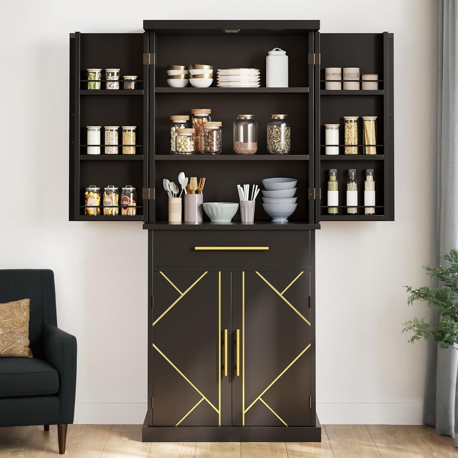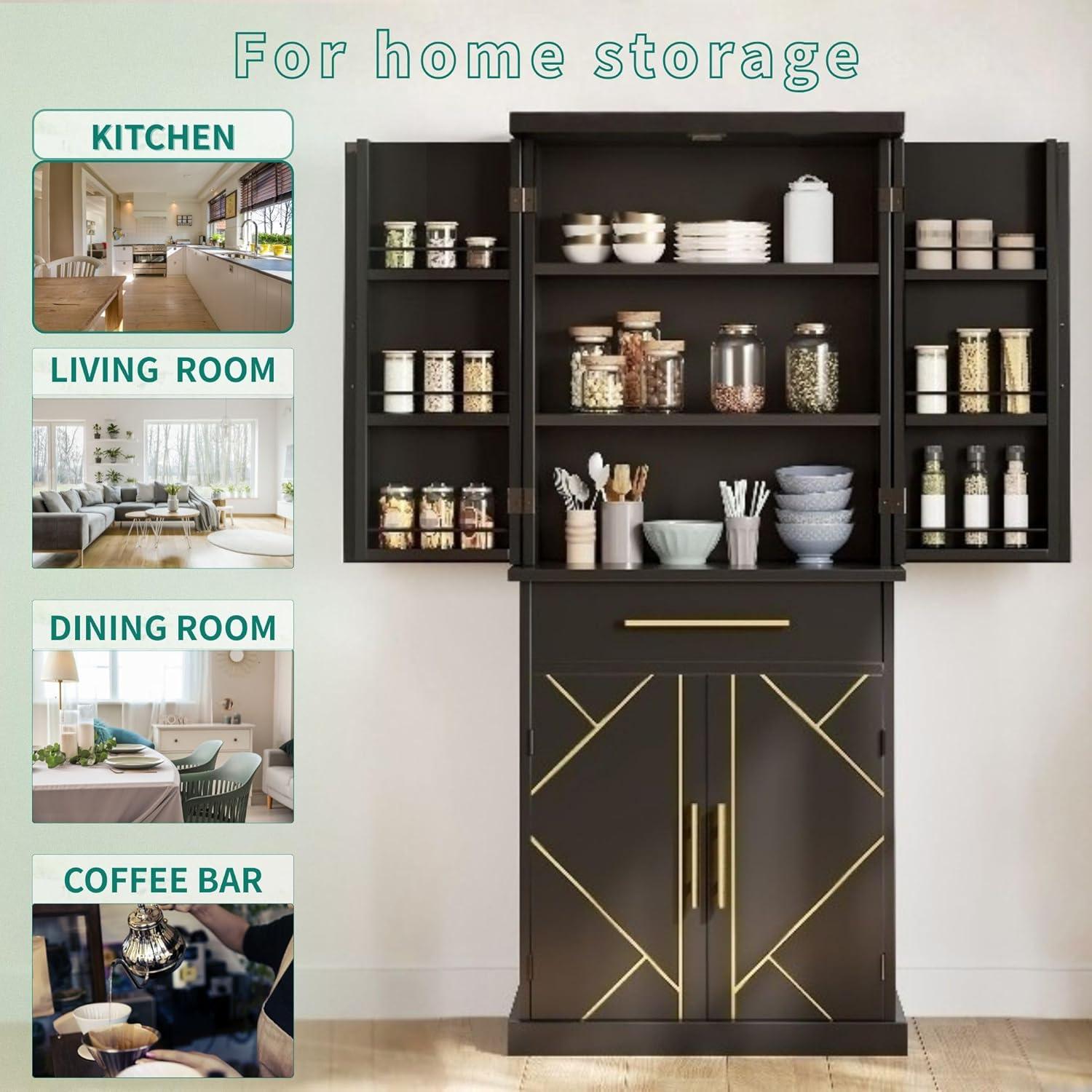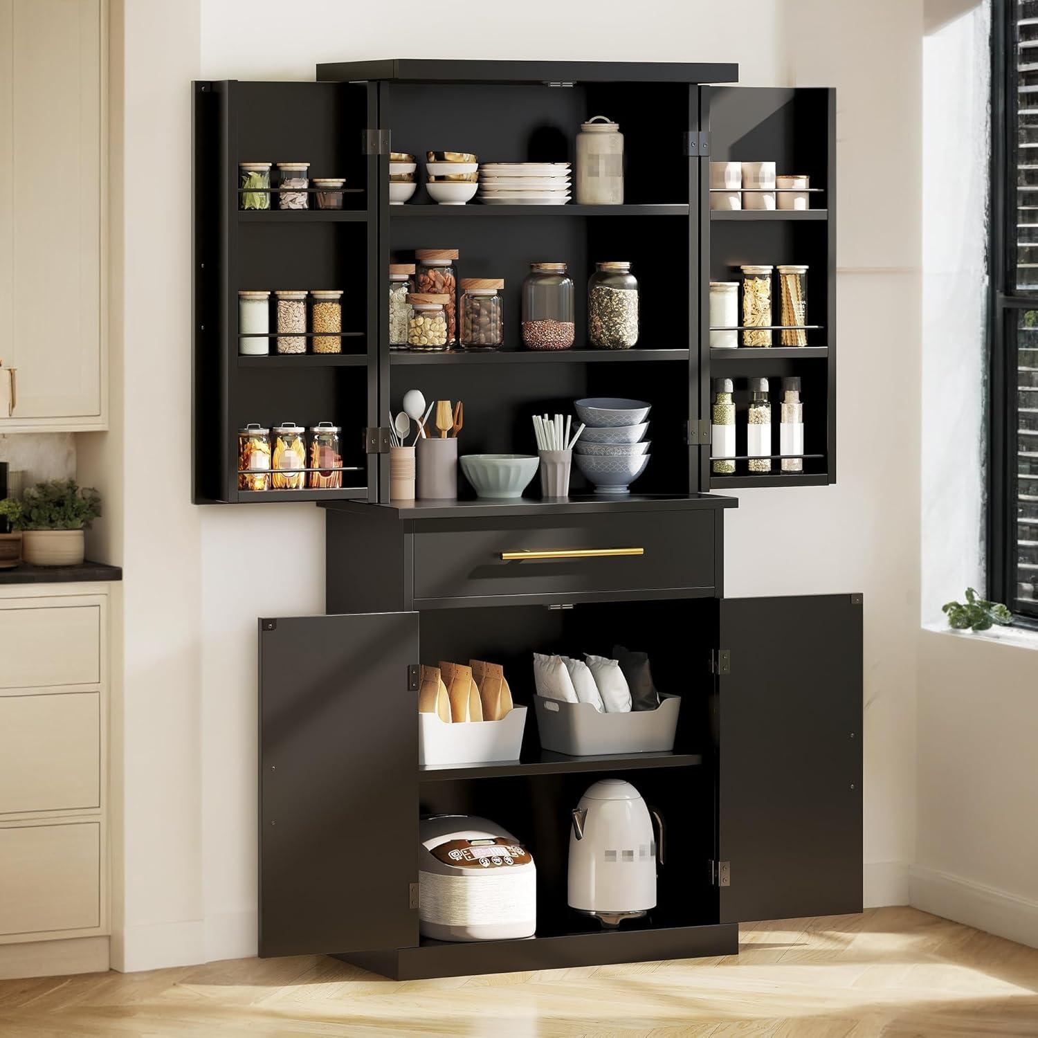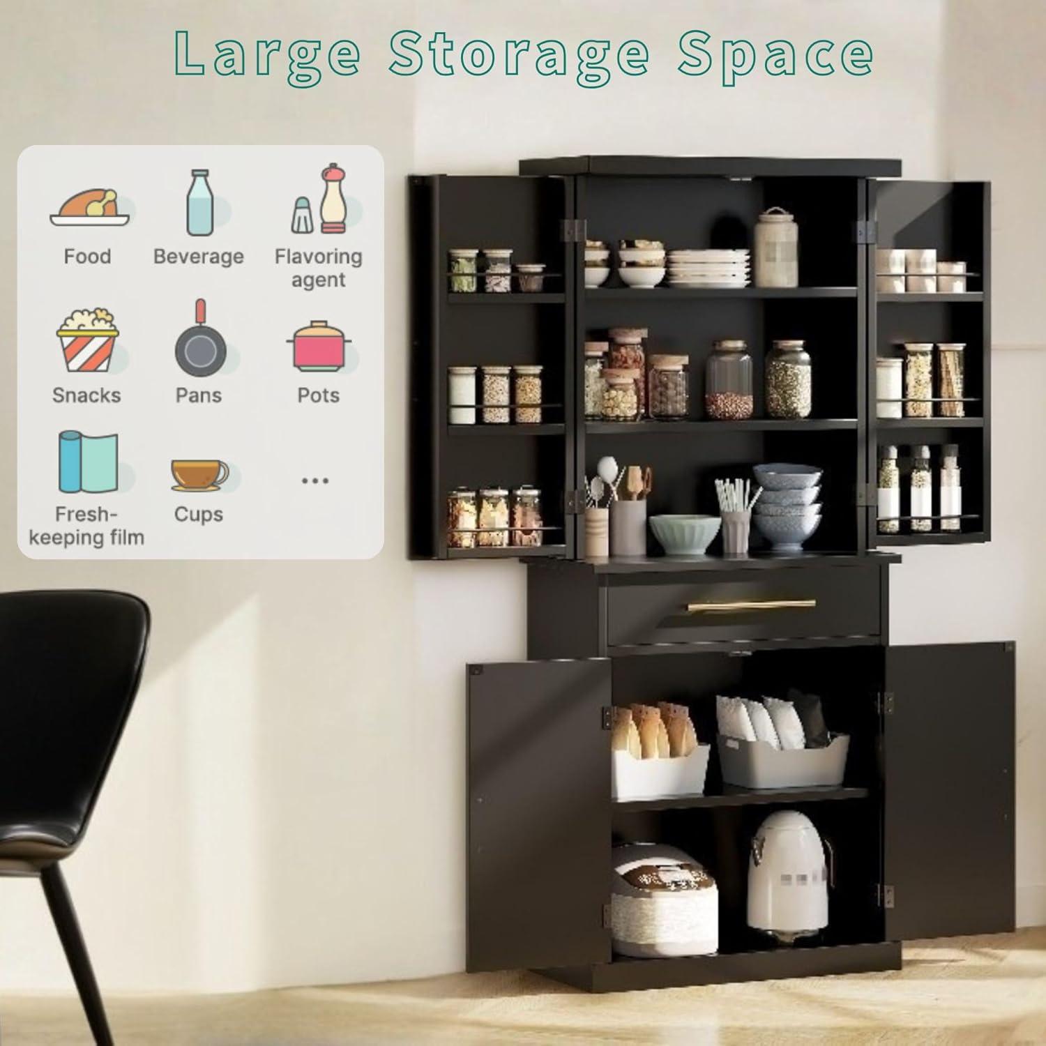 Stable, Durable, and Safe: Durable MDF, easily carry your kitchenware and food and appliances, this pantry cabinet is sturdy and durable for long-term use; the included anti-tip kit helps secure the cabinet to the wall to give you a safer living space.