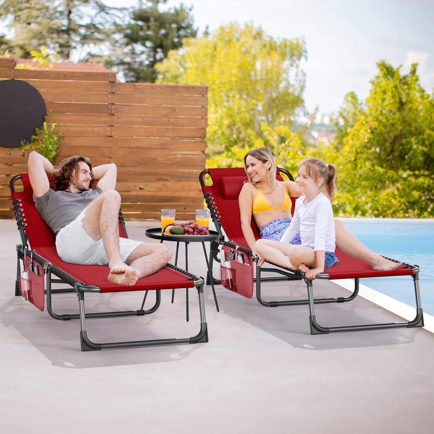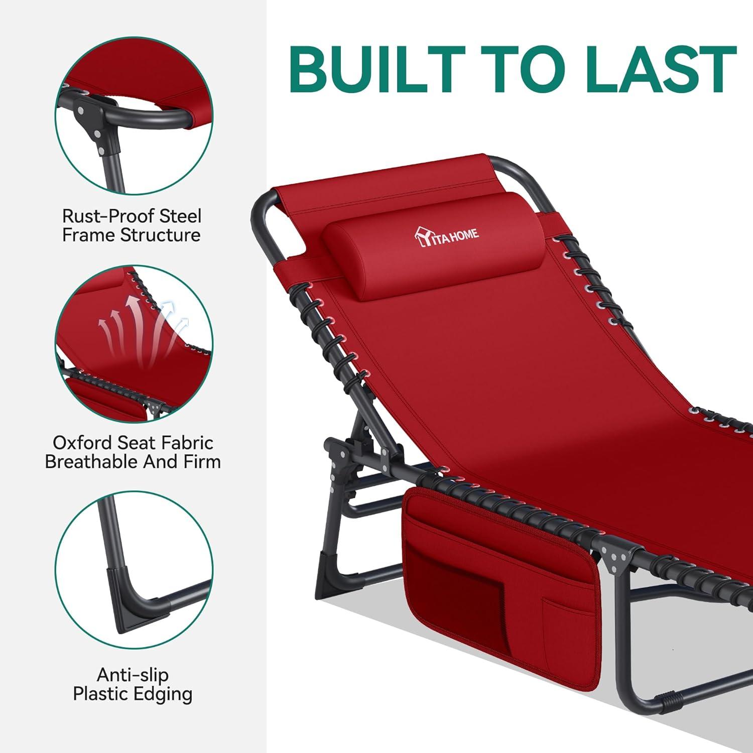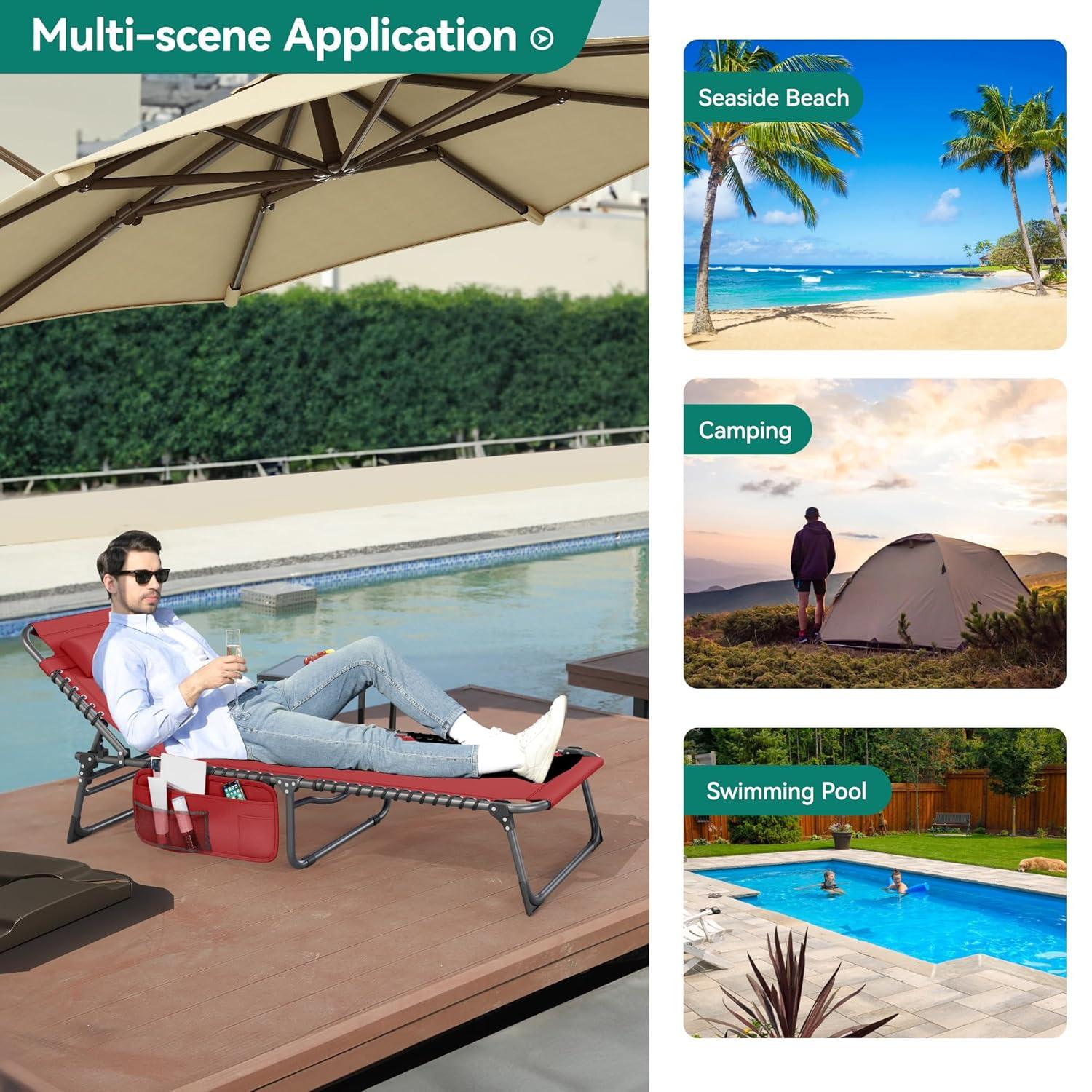 5 POSITIONS LOUNGE CHAIR – This lounge chair has 5 angles to adjust, you can choose to lie on your side or flat, choose the Angle, please tighten the buckle to secure the back
