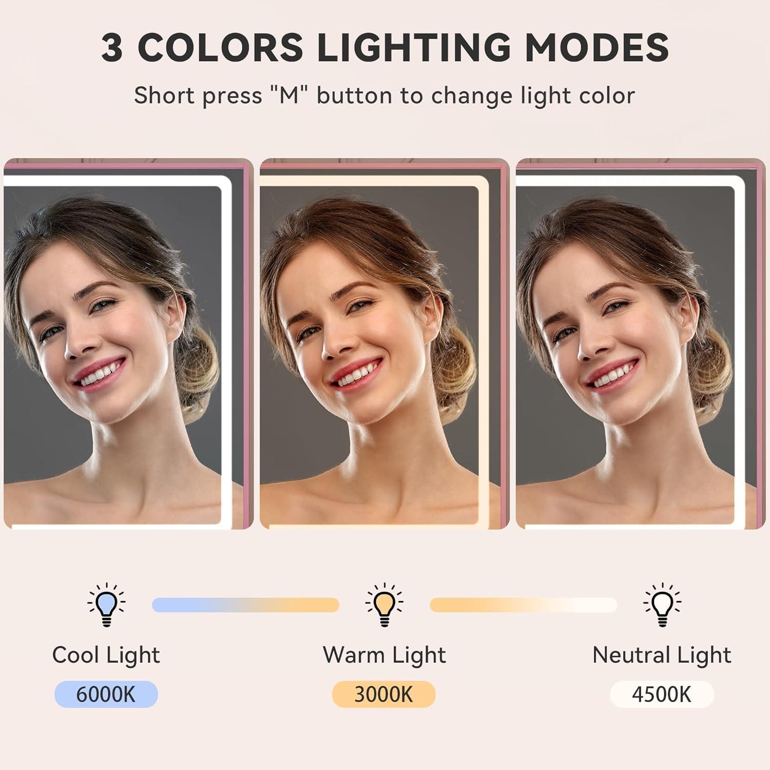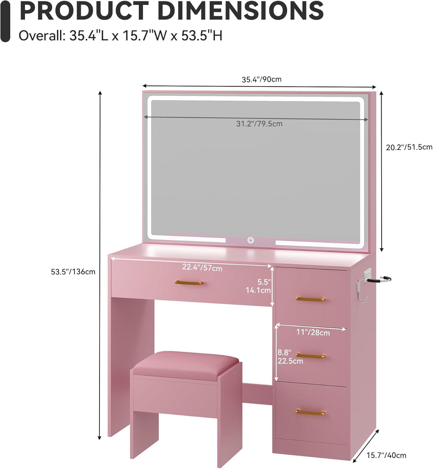 Professional Illumination Meets Spacious, Wide-View Mirror – Get ready with studio-quality precision thanks to the expansive 35-inch vanity mirror with LED lights. The customizable glow allows you to tap through three color temperatures (cool white, warm white, warm yellow) and hold to dim or brighten, ensuring the lighting for any task from day to night. This makeup table with lighted mirror provides flawless, shadow-free illumination that mimics natural daylight, making it ideal for detailed makeup application