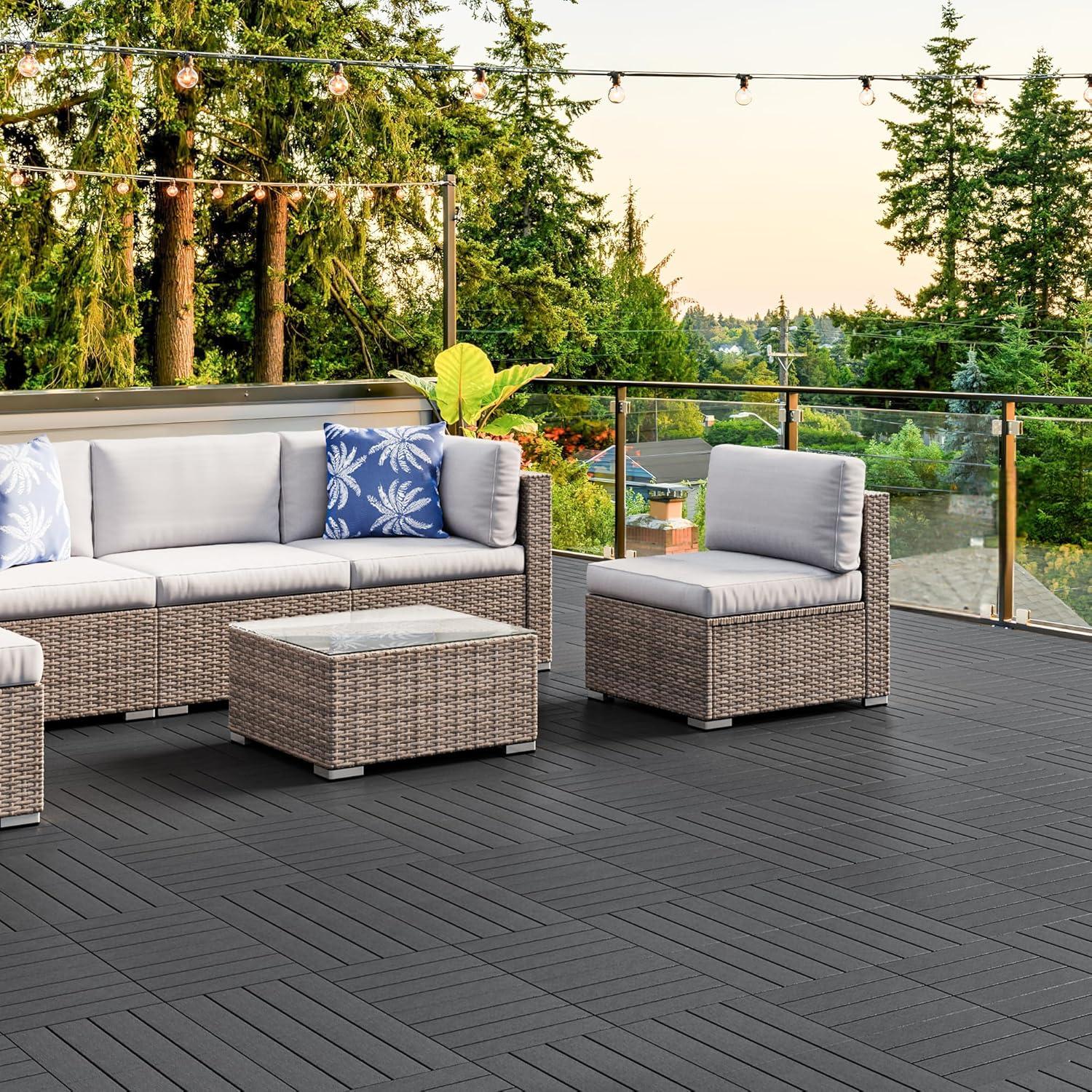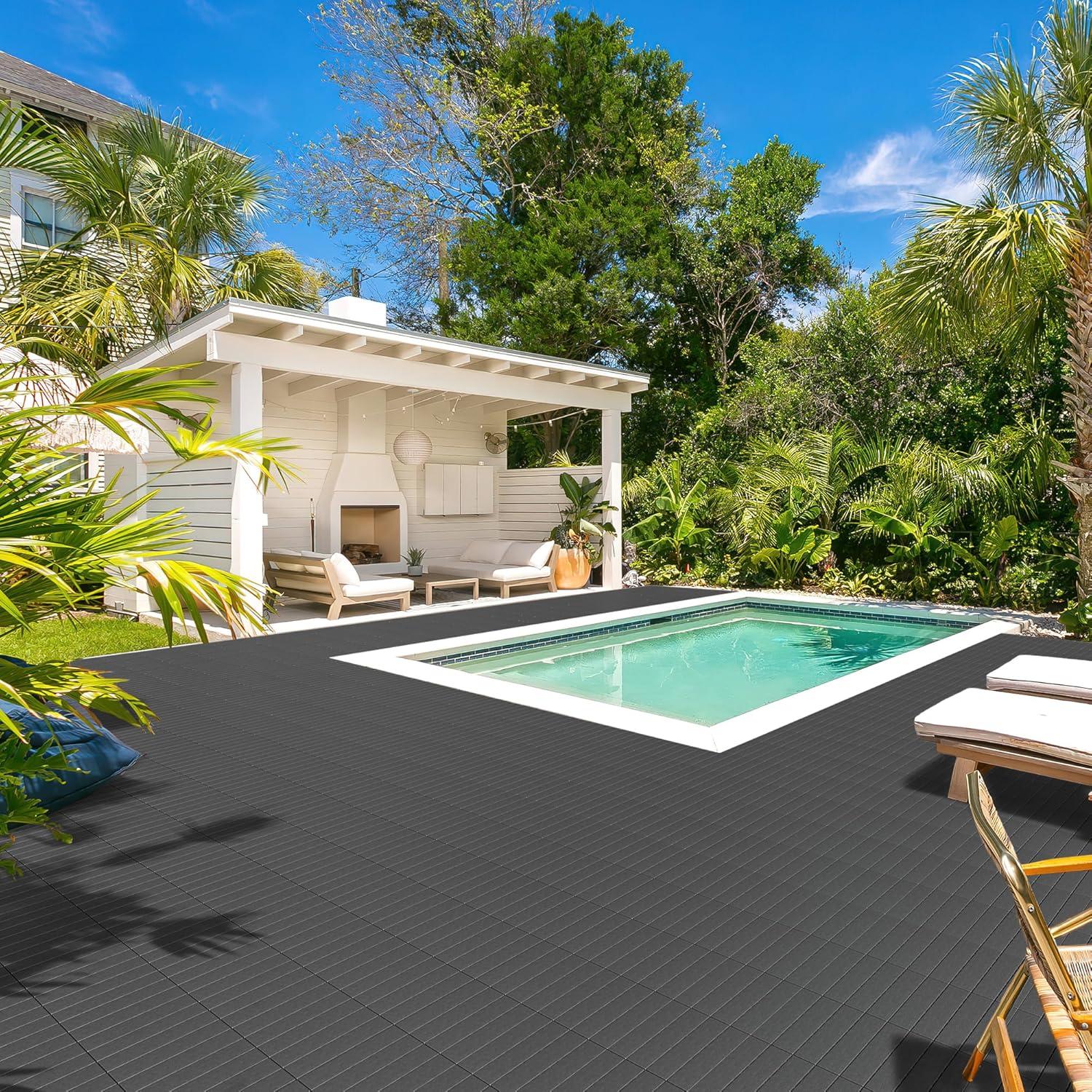 YITAHOME Plastic Interlocking Deck Tiles, 36 Pack, Waterproof Outdoor Flooring All Weather Use, Durable & Slip-Resistant, Suitable for Patio, Garden, Deck, Poolside, Backyard, 12x12 Inches, Dark Grey