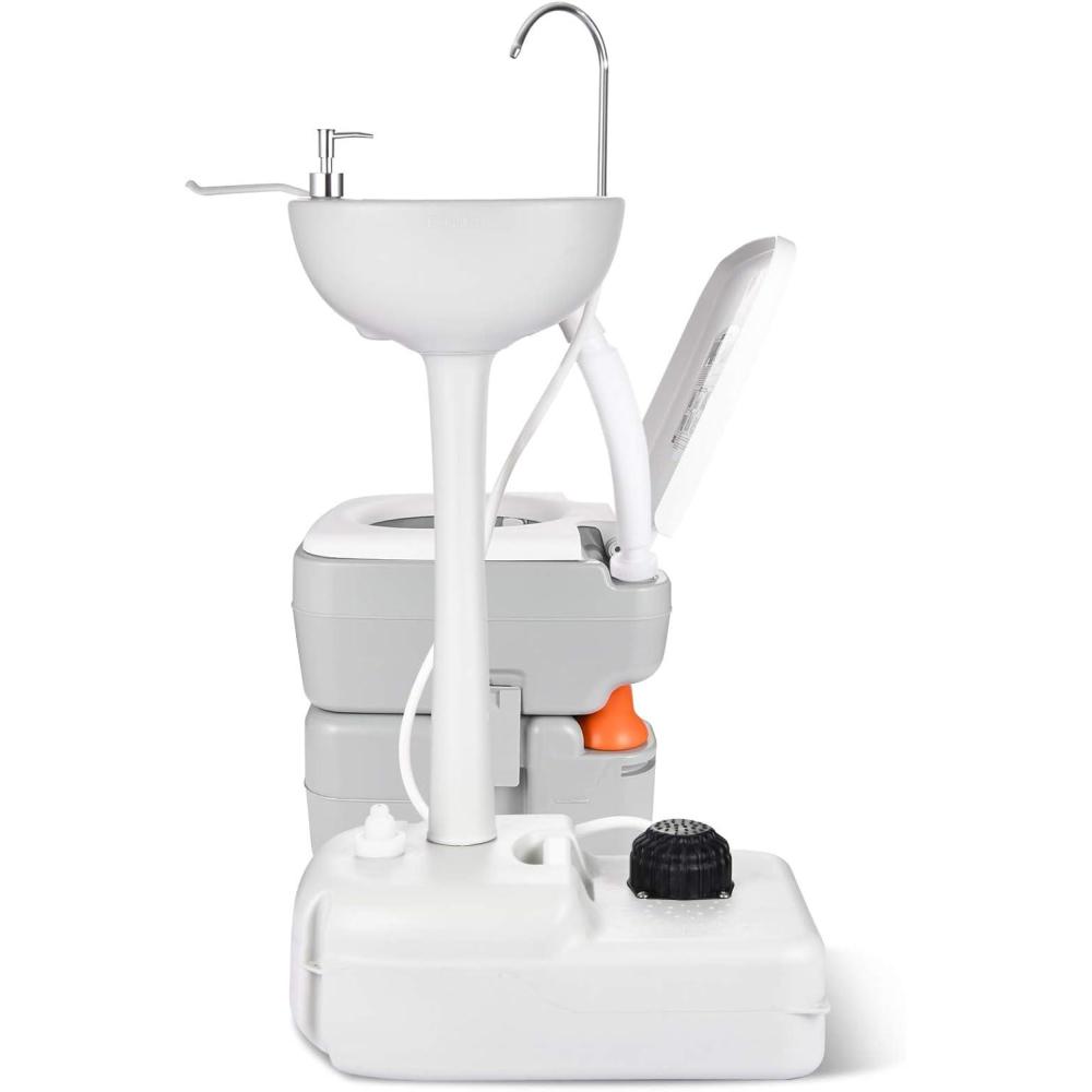 EASY TO INSTALL: For its detachable and compact design, the outdoor sink can be set up by yourself in minutes without needing additional tools. The detailed user guide can help you accelerate the process very much. While the camping toilet needs no installation.