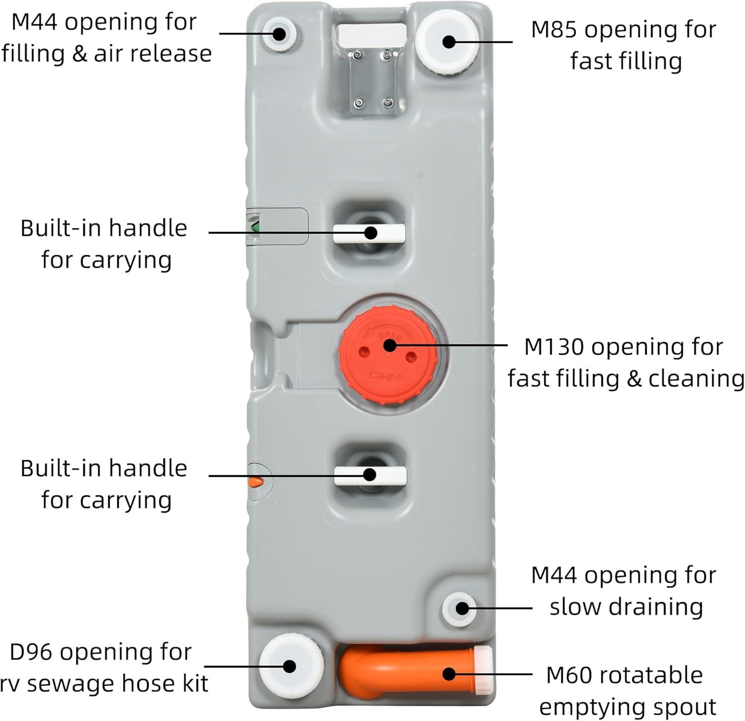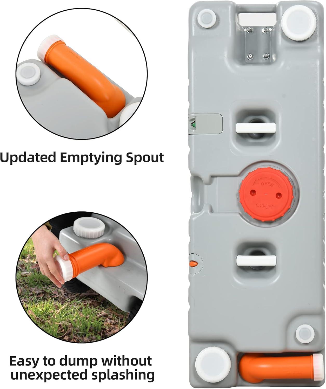 LARGE CAPACITY: The 19.8 gallon portable water holding tank ensures multiple uses before emptying, more convenient for outdoor events or camping trips where access to waste disposal facilities may be limited.